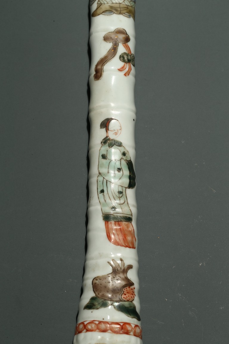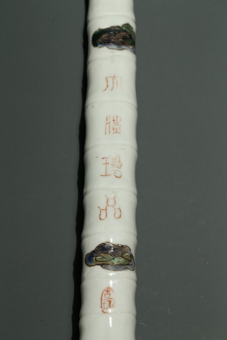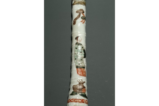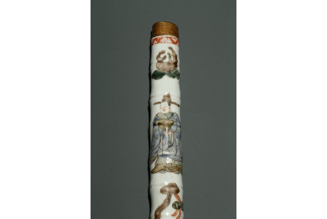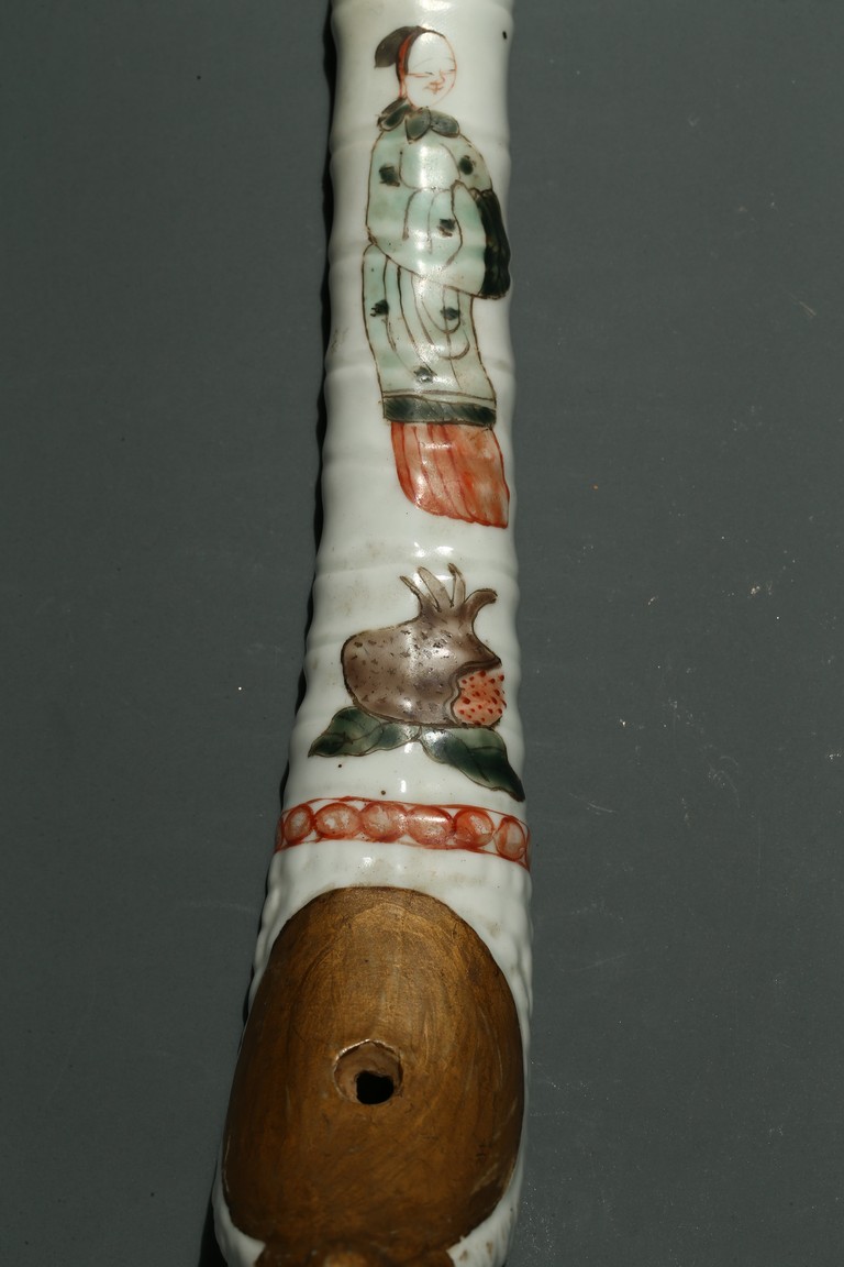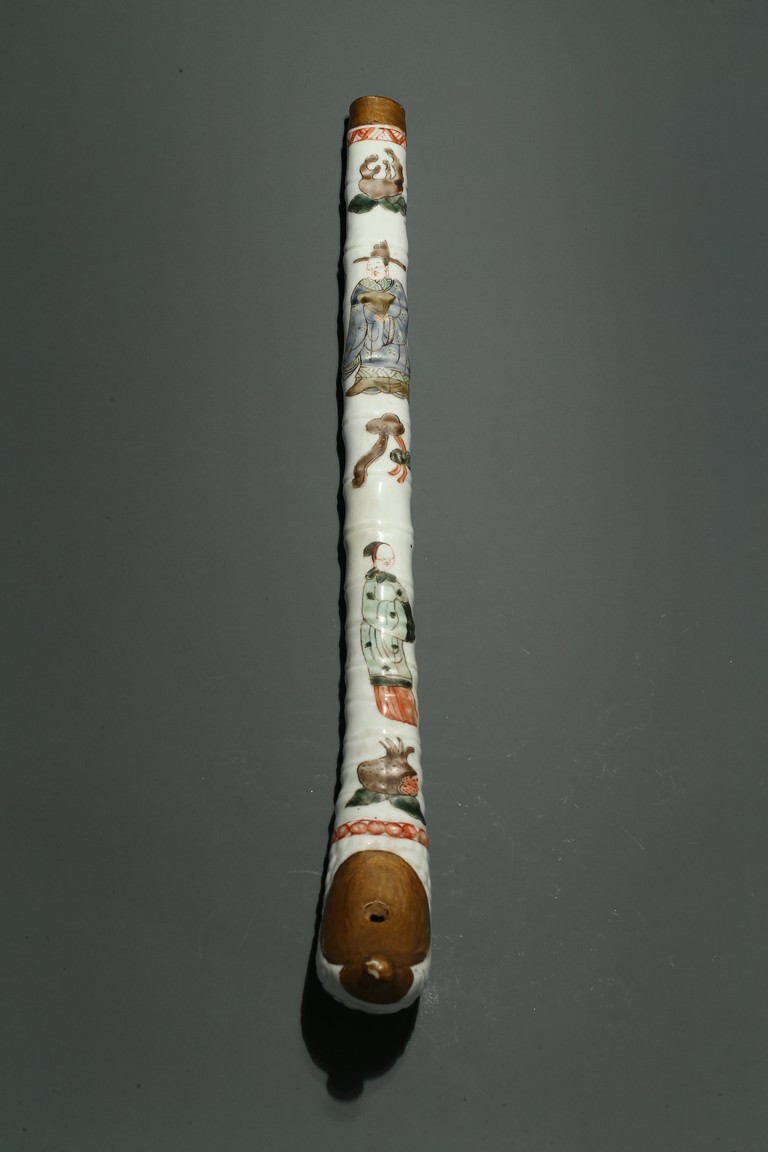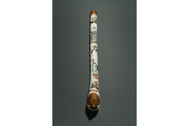 口部與尾部描金,器身彩繪“男女人物”“石榴”“靈芝如意”。寓意美好,寓意多子多福。