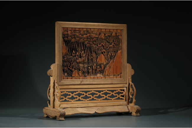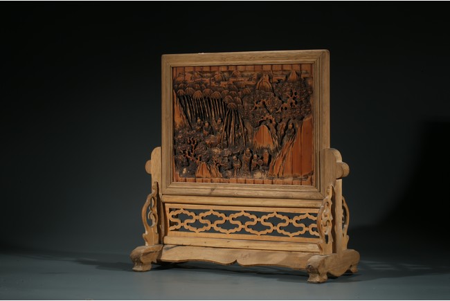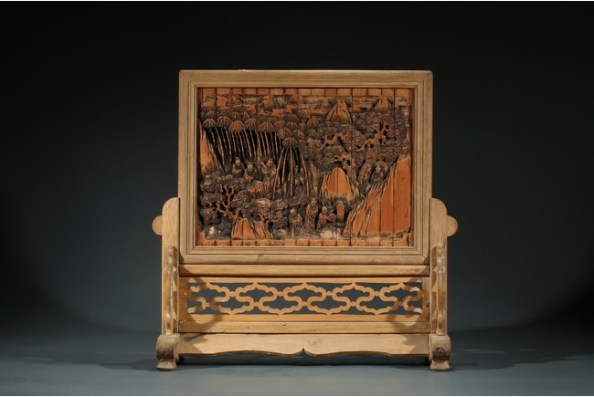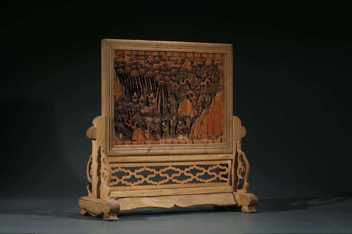 此件插屏工細精緻,如詩如畫,插屏心採用透雕、深雕手法,雕琢竹林七賢,意境高遠,人物刻畫傳神,包漿溫潤,案頭陳設、賞玩均可。