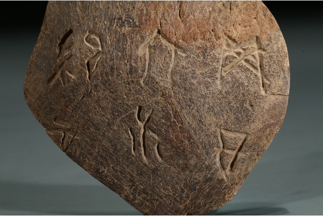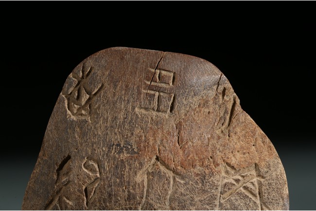 AN ARCHAIC BONE 'ORACLE SCRIPT' CARVING 商 骨頭雕甲骨文挂件