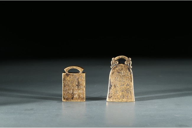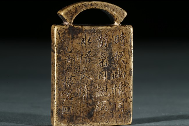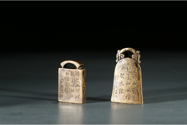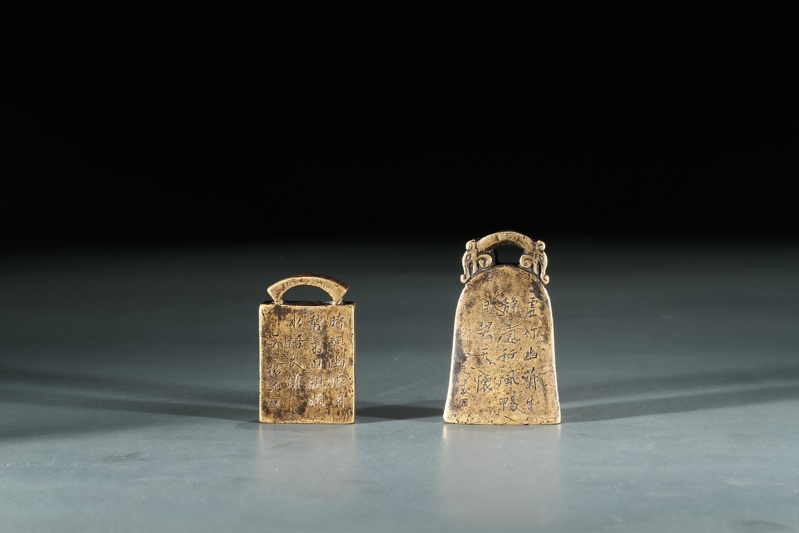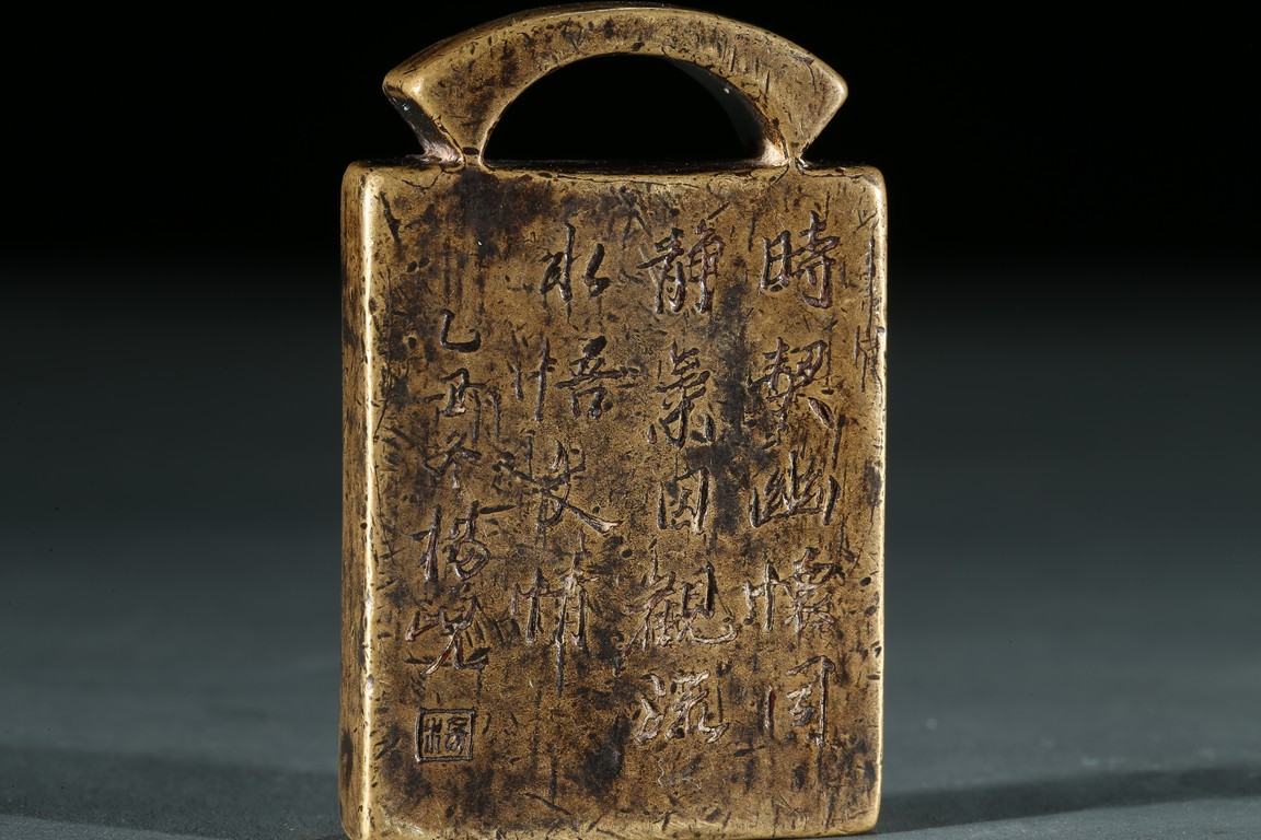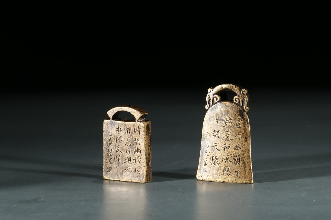 A PAIR OF CHINESE BRONZE INSCRIBED SEALS 銅詩文詩人印章 (2個)