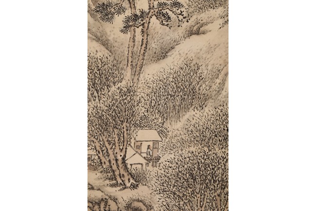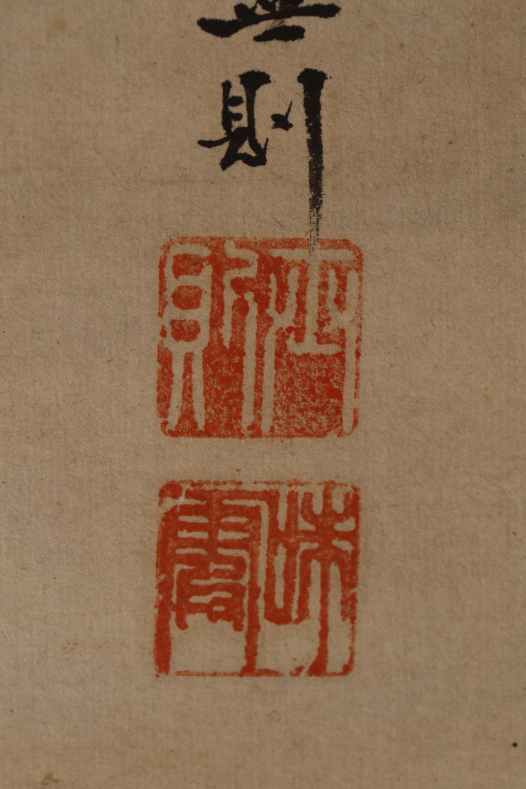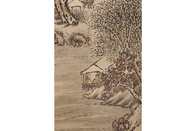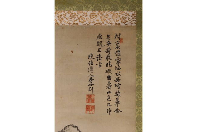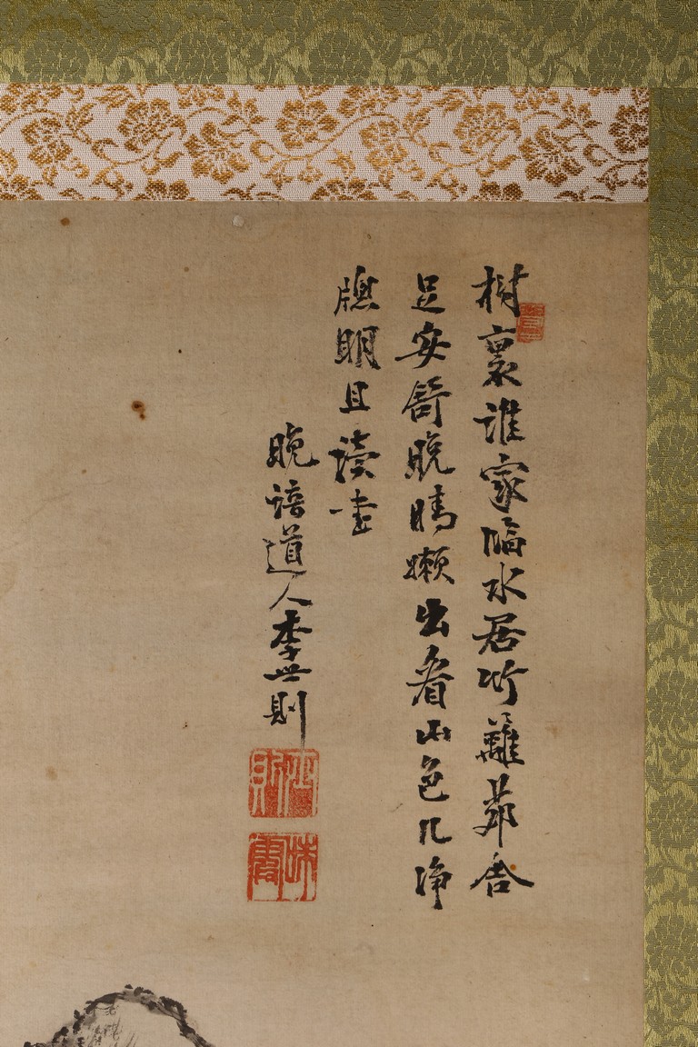 Color and ink on paper. Landscape. Hanging scroll. Inscribed and signed Li Shize, with three seal marks of the artist.