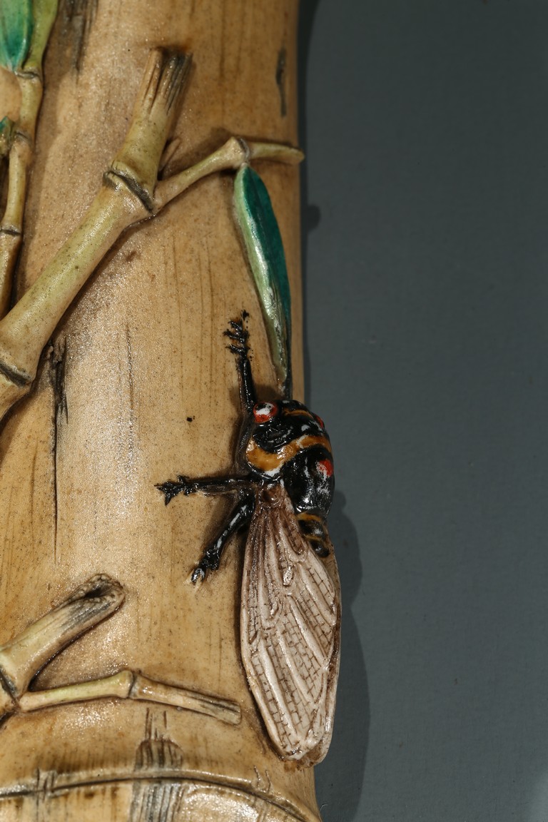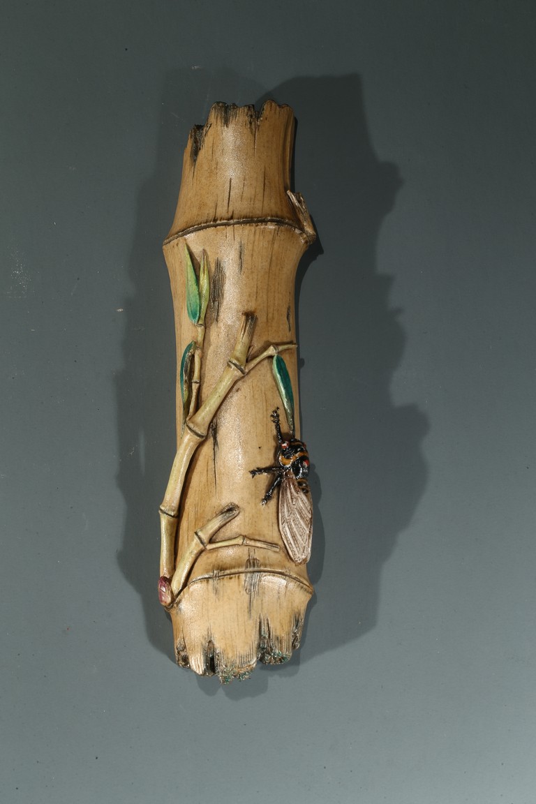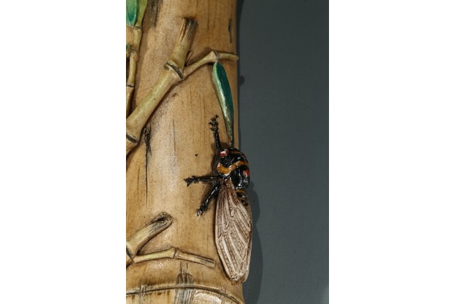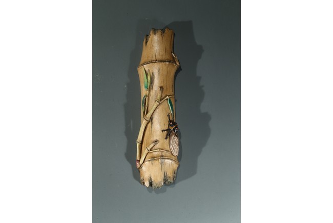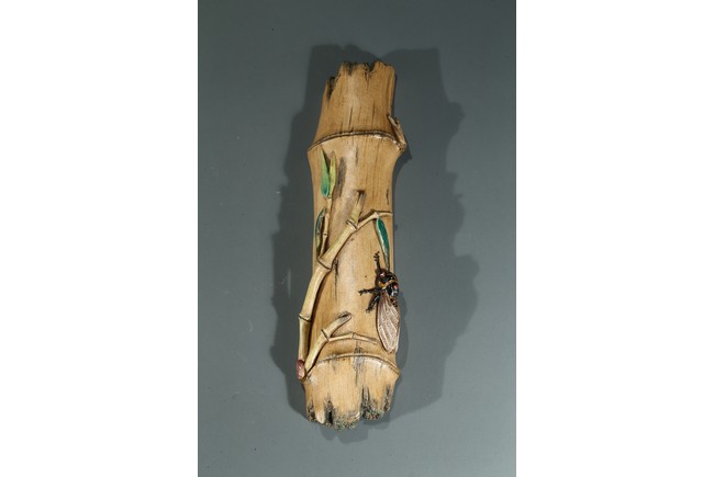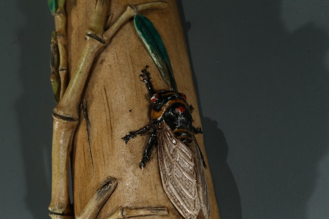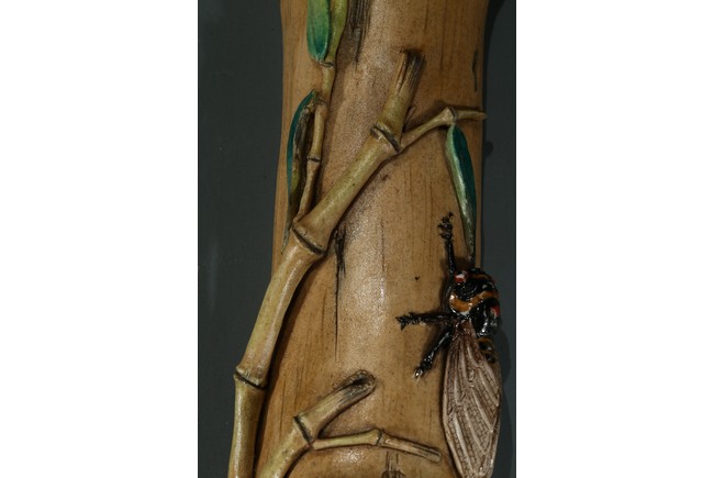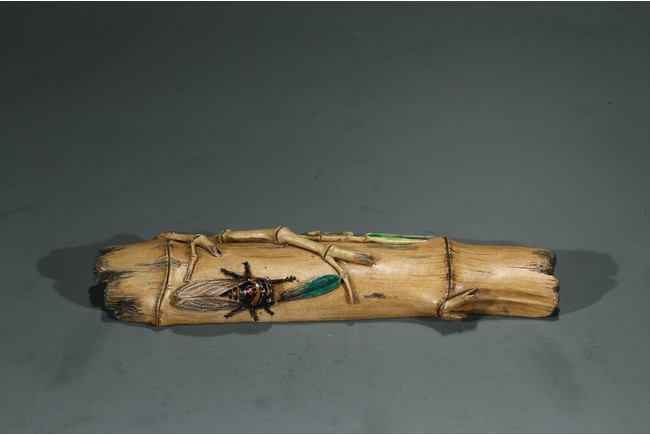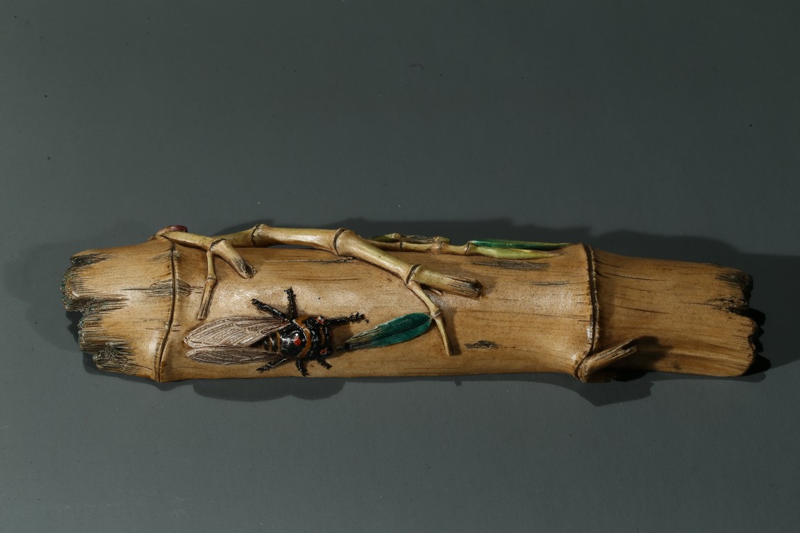 The wristrest modelled in the form of a segment of bamboo trunk with branches and cicada in high relief on the top.