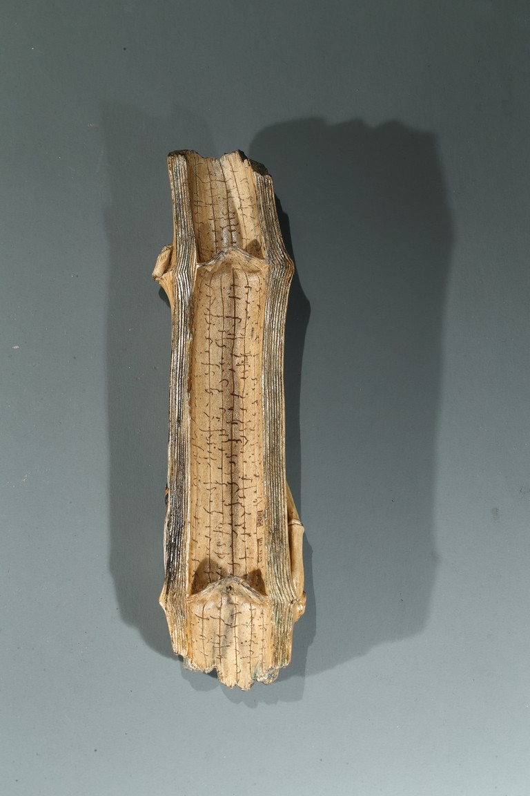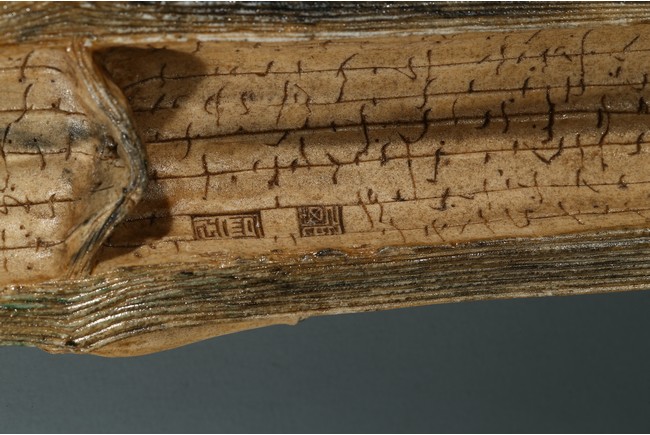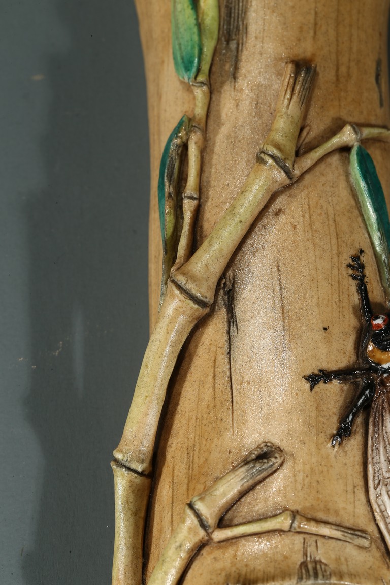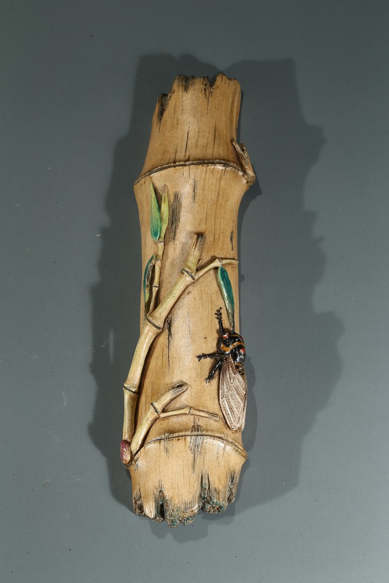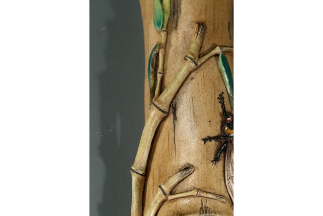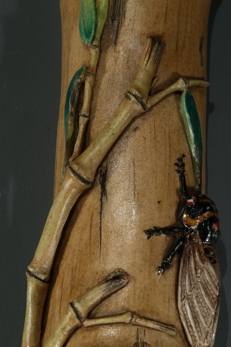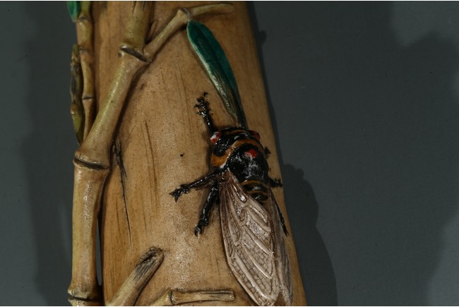 The wristrest modelled in the form of a segment of bamboo trunk with branches and cicada in high relief on the top.