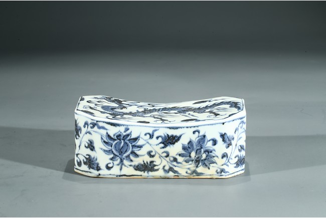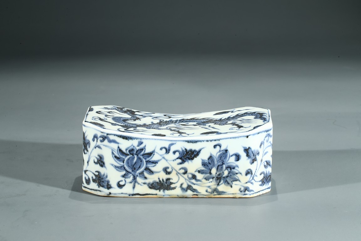 The top painted with three-clawed wrathful dragon traveling through clouds, the sides decorated with lotus scrolls, base unglazed.