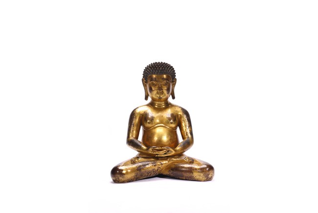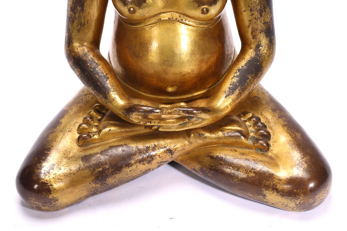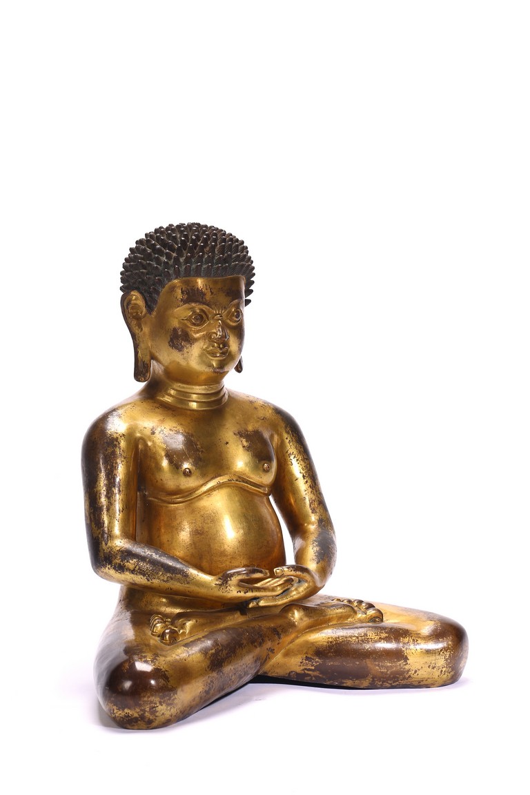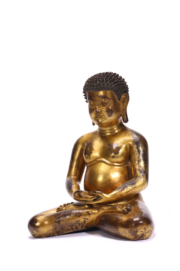 Provenance: Property from a private Dallas, Texas collection 來源: 德州達拉斯私人藏家收藏。瑜伽士通體鎏金,成全跏趺坐,雙手結手印於胸前,雙胸微垂,臉龐圓潤,神情悠然自得.佛像整體保存完整,脫金處包漿自然,背後臀部有吉祥意義的藏文款.瑜伽士為密宗修練的最高級,法力通達時可以縮陽入體,這尊瑜伽士像通過X光可以看到內部有男性陽具藏在體內,令人驚嘆不已。佛像的上師像是佛像種類收藏種類的熱門,他們不拘泥於某一種藝術形式,奔放、自由具有自己的藝術特色,兼具了收藏與信仰的雙重價值.實為不可多得的藏品。