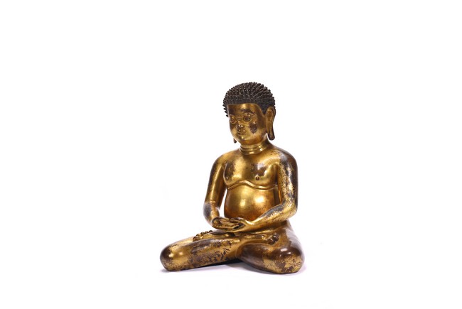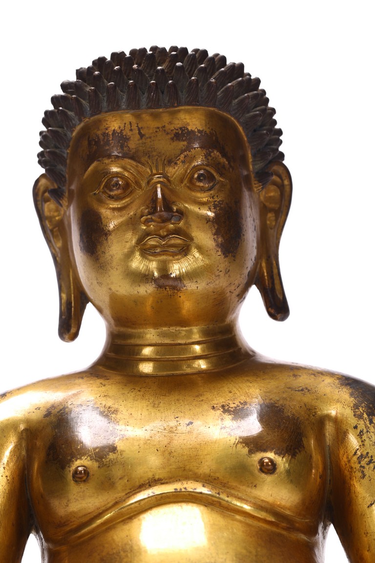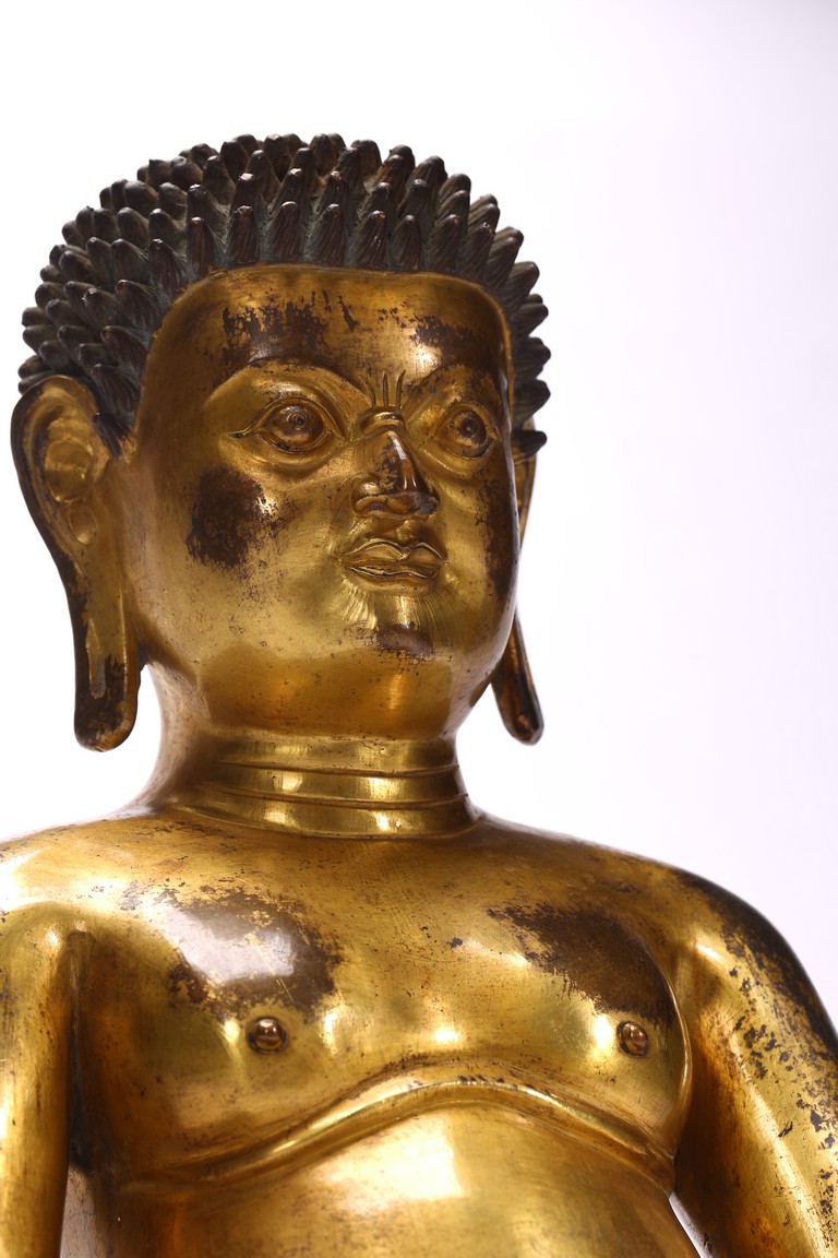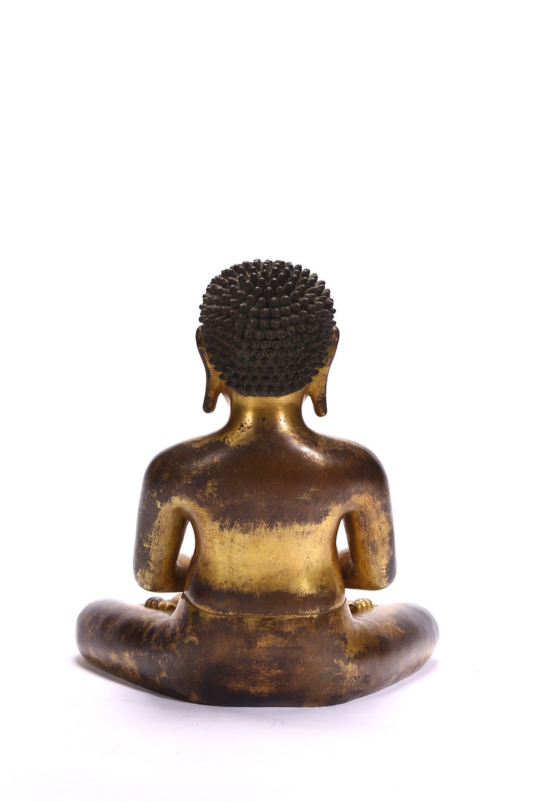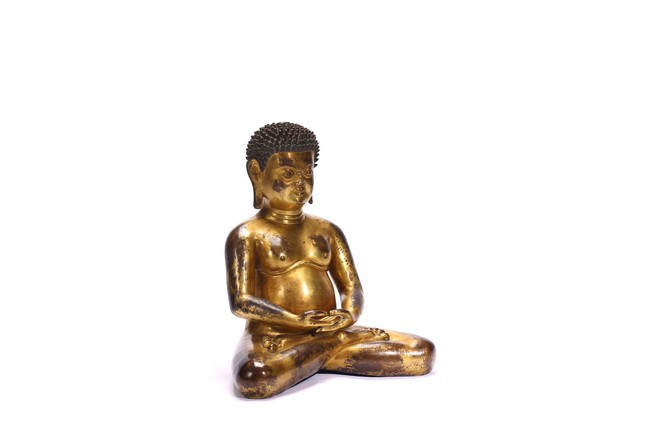 Provenance: Property from a private Dallas, Texas collection 來源: 德州達拉斯私人藏家收藏。瑜伽士通體鎏金,成全跏趺坐,雙手結手印於胸前,雙胸微垂,臉龐圓潤,神情悠然自得.佛像整體保存完整,脫金處包漿自然,背後臀部有吉祥意義的藏文款.瑜伽士為密宗修練的最高級,法力通達時可以縮陽入體,這尊瑜伽士像通過X光可以看到內部有男性陽具藏在體內,令人驚嘆不已。佛像的上師像是佛像種類收藏種類的熱門,他們不拘泥於某一種藝術形式,奔放、自由具有自己的藝術特色,兼具了收藏與信仰的雙重價值.實為不可多得的藏品。