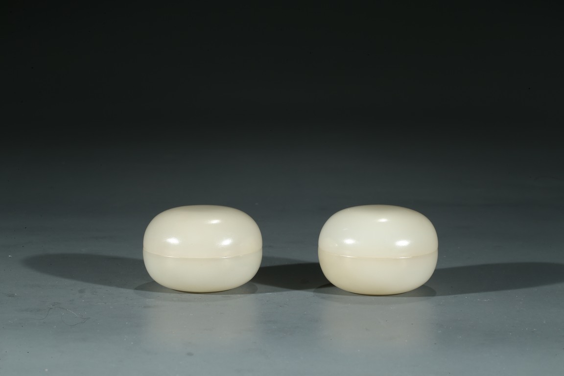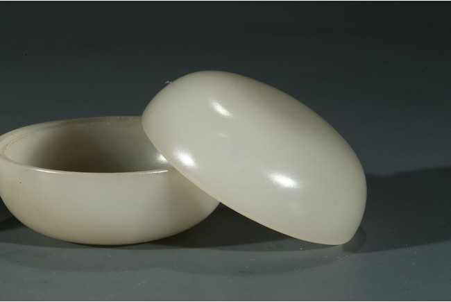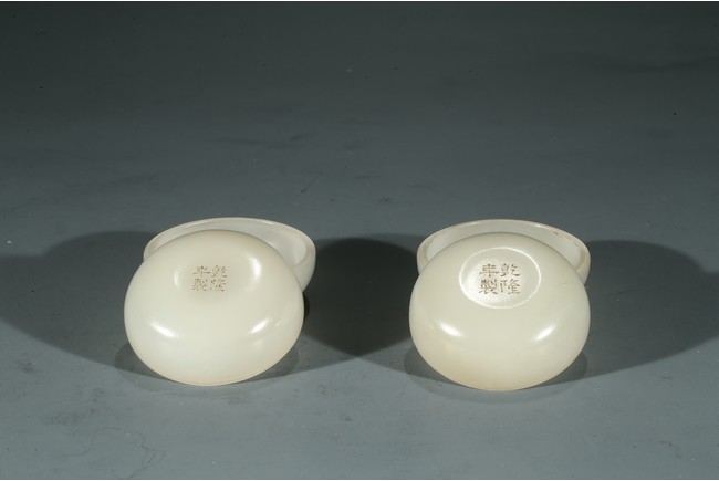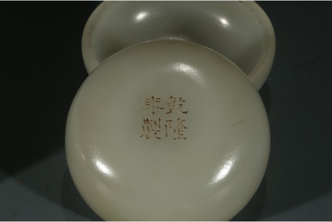 Of slightly compressed globular form, the base inscribed with four character Qianlong mark, the stone is of smooth even white tone. Qing Dynasty period.