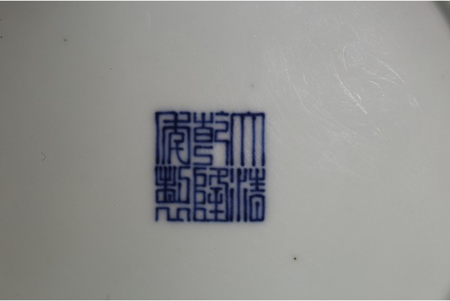 Qing Dynasty period. Of circular shape decorated to the center with a floral strapwork enclosing lotus flower, the outer rim decorated with a band of sanskrit characters, the base with inscribed with six character Qianlong mark.