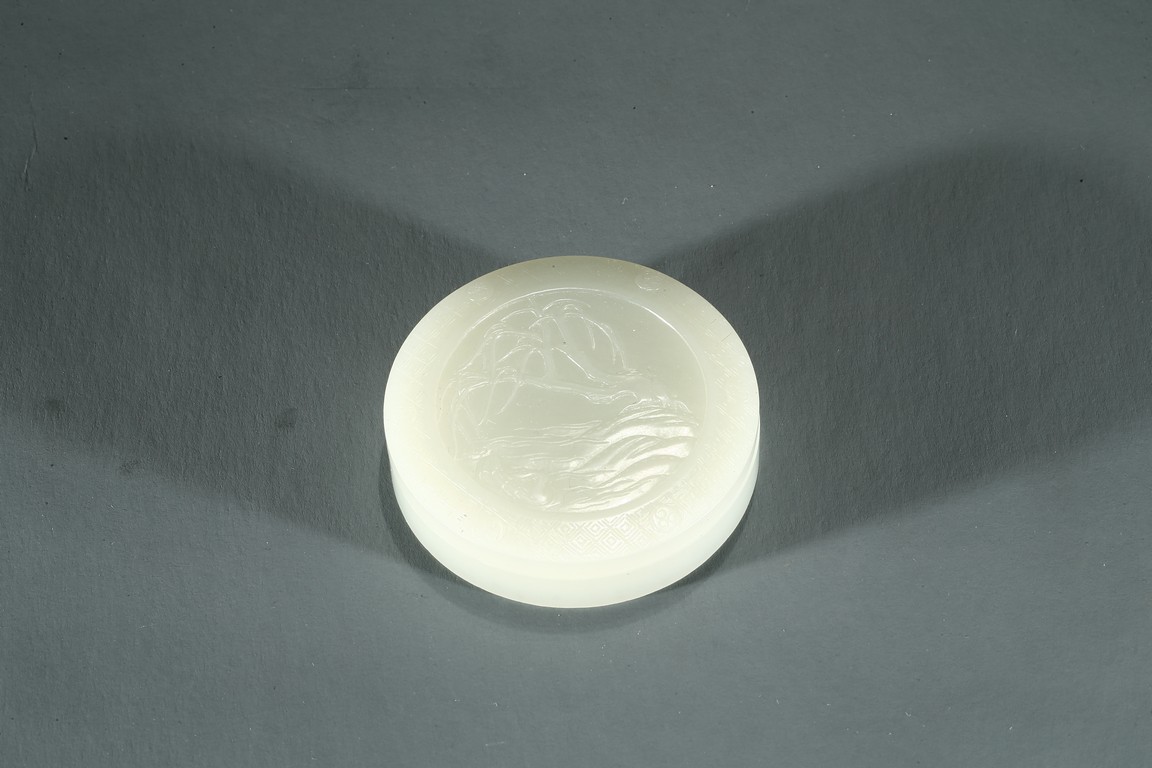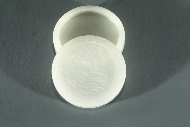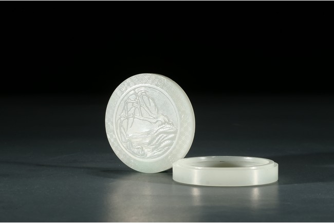 A WHITE JADE 'DUCK' CIRCULAR BOX AND COVER 白玉雕遊鴨紋圓蓋盒