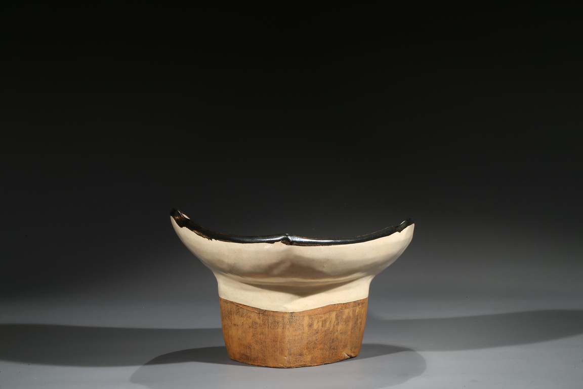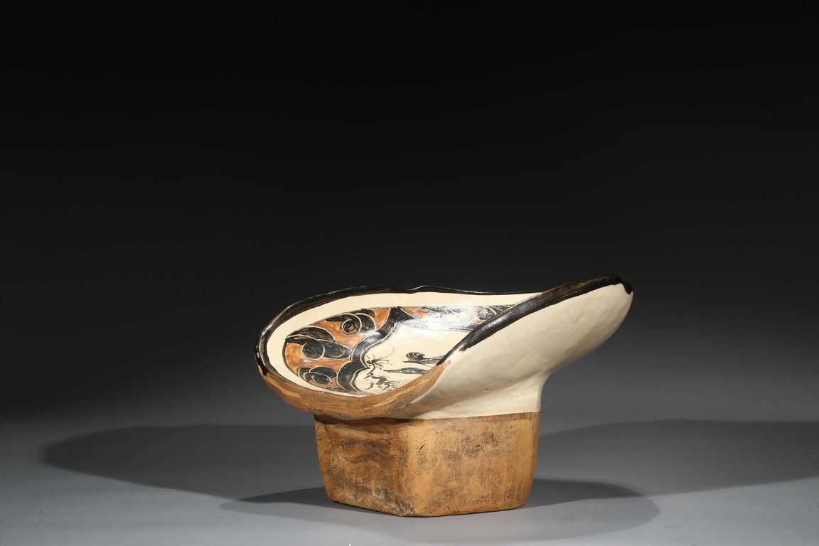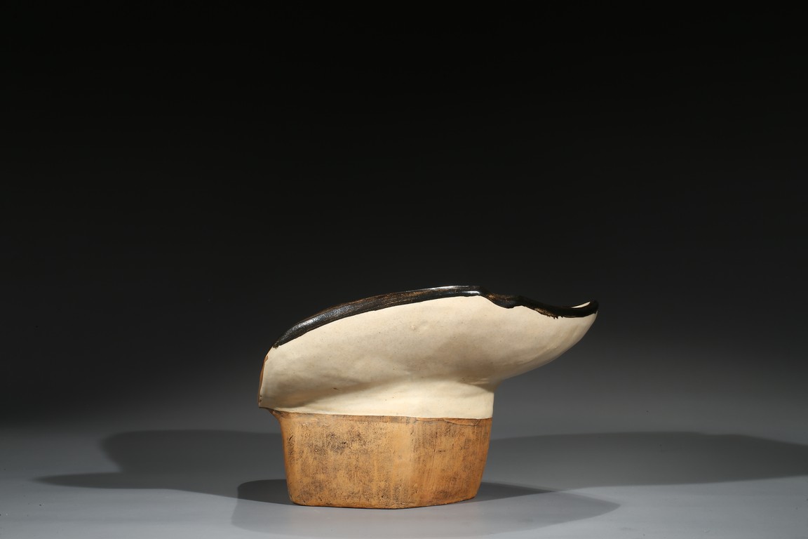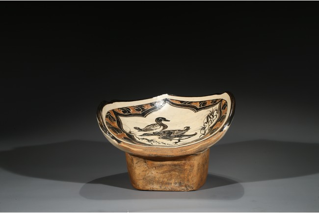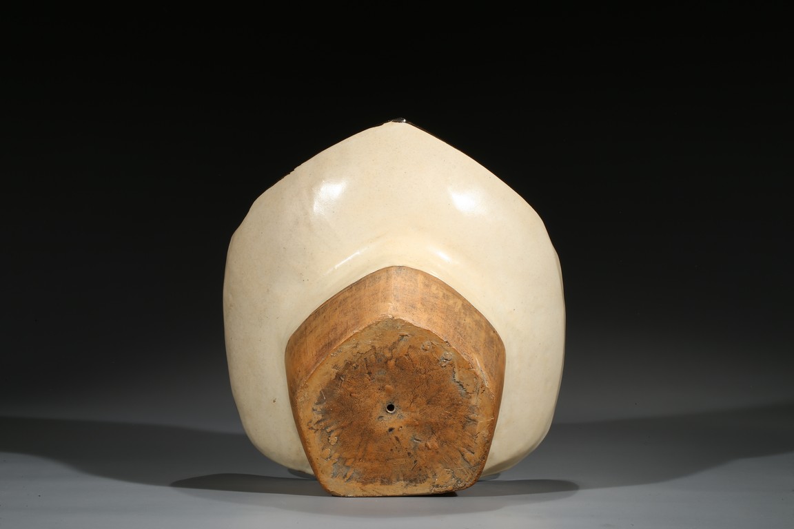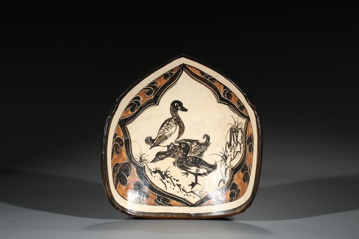 Of ruyi form, painted to the surface with three Mandarin ducks, covered overall with white glaze stopping above the base.