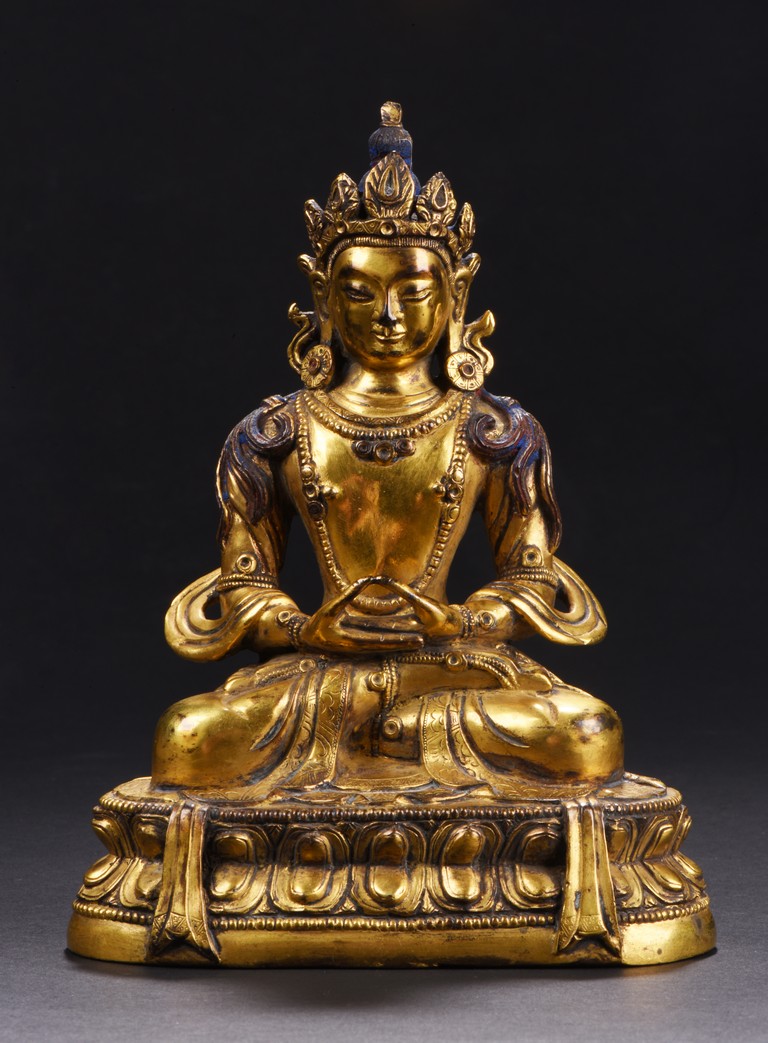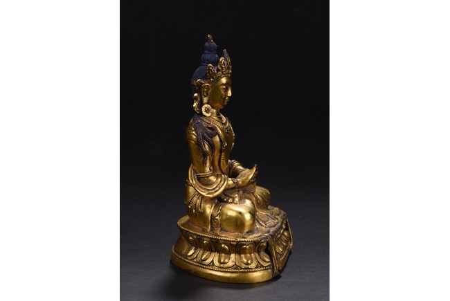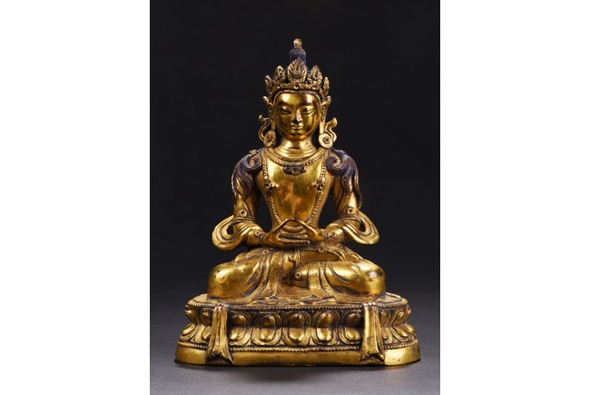 A GILT-BRONZE FIGURE OF AMITAYUS    清 銅鎏金無量壽佛