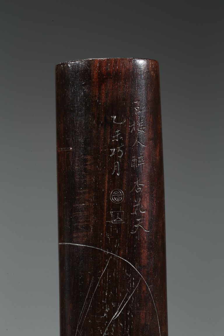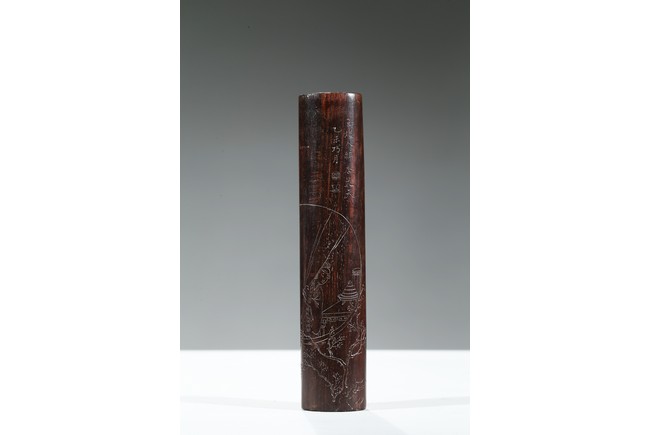 Of rectangular form, incised to depict beauty and inscribed with poetic inscription. Qing Dynasty period.