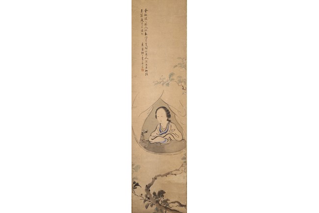 Color and ink on paper. Lady. Hanging scroll. Inscribed and signed,with one seal of the artist.