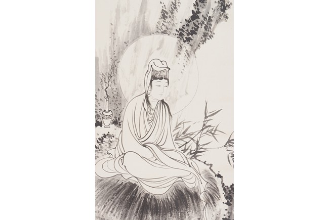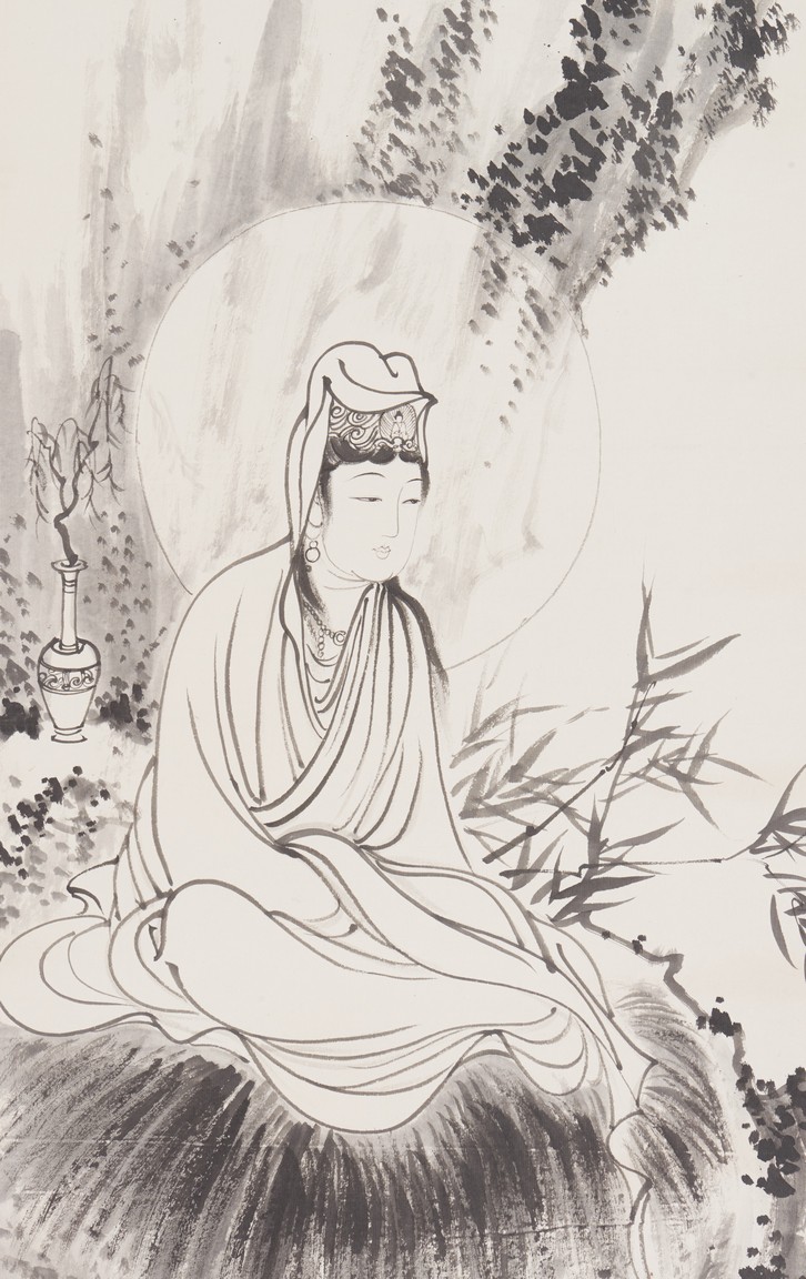 AN INK ON PAPER 'GUANYIN' PAINTING, PU RU 溥儒 觀音大士像 水墨紙本 立軸