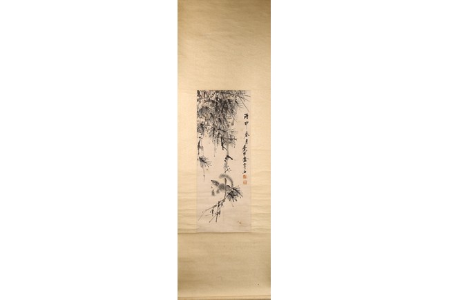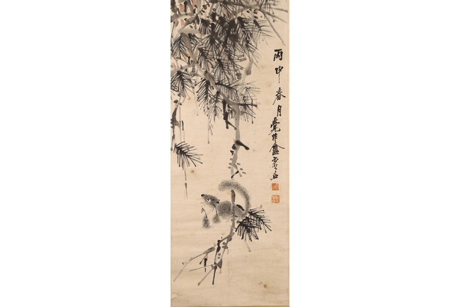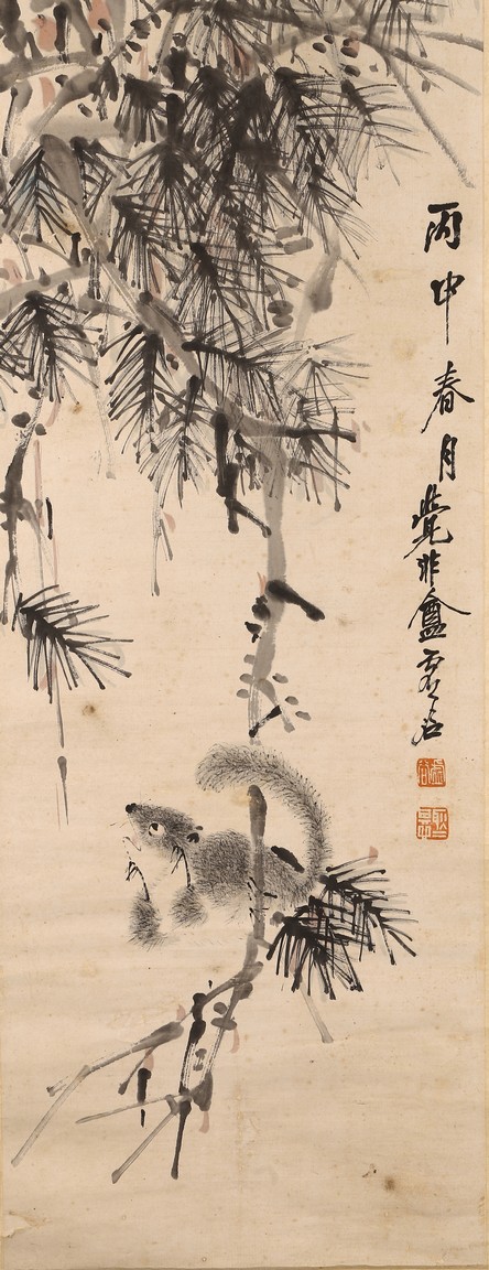 Chinese School. Hanging scroll.Squirrel. Inscribed and signed Xu Gu, dated to 1896, with two seals of the artist.