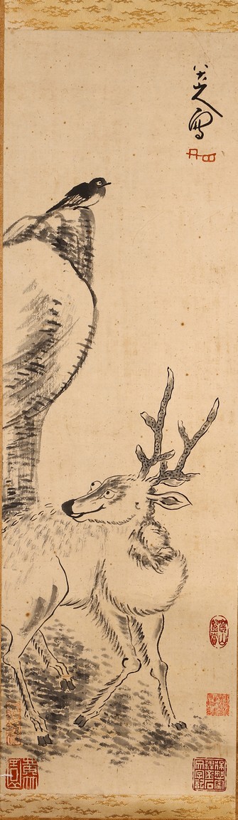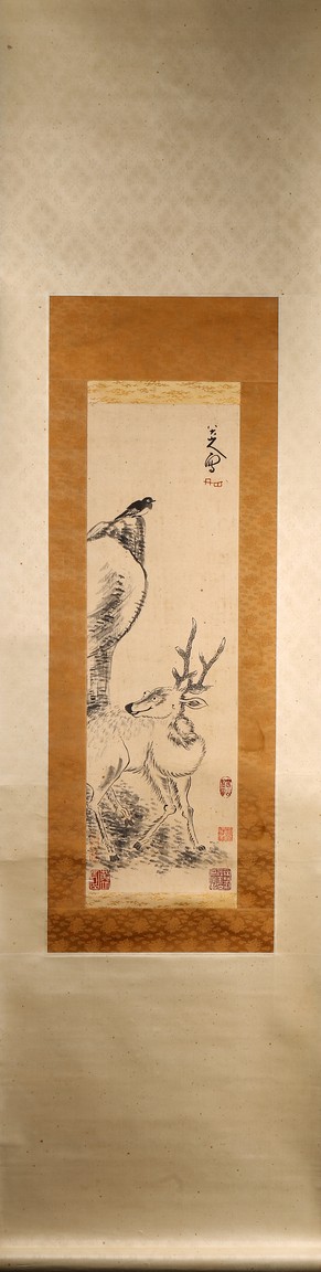 Chinese School. Deer and Bird. Hanging scroll. Signed Bada Shanren with six seal marks.