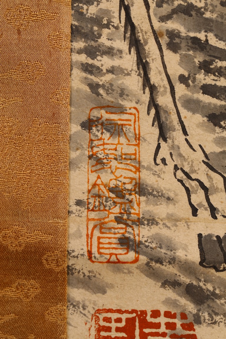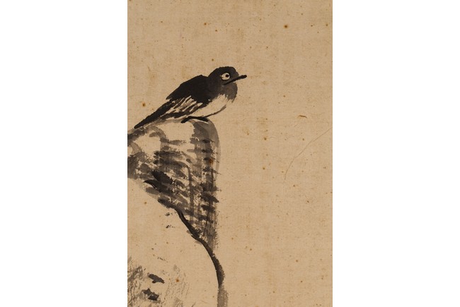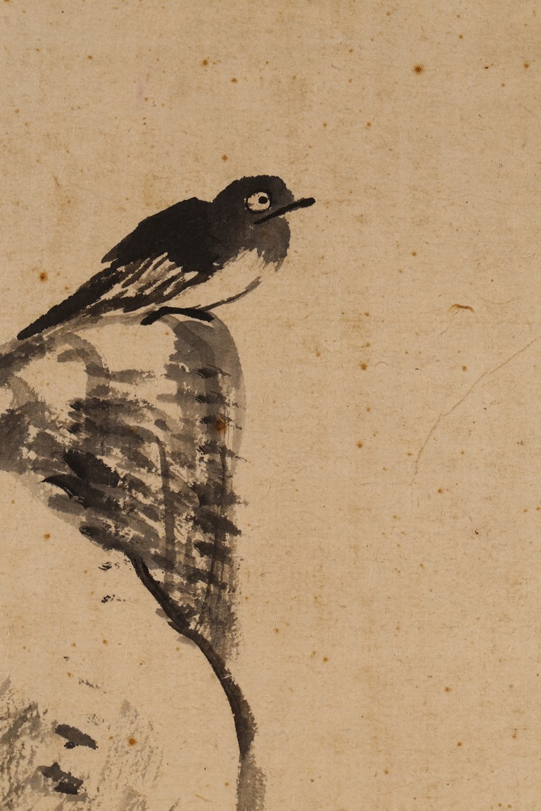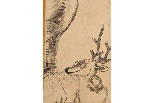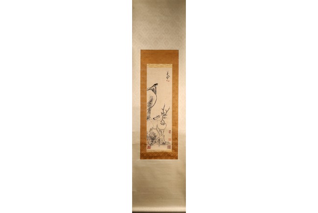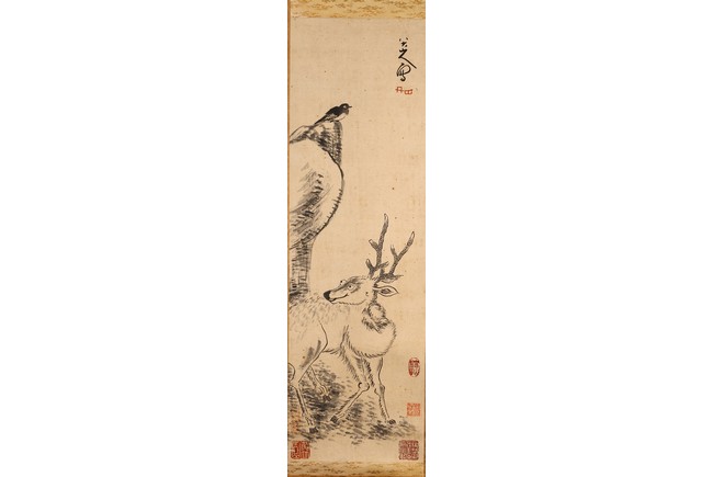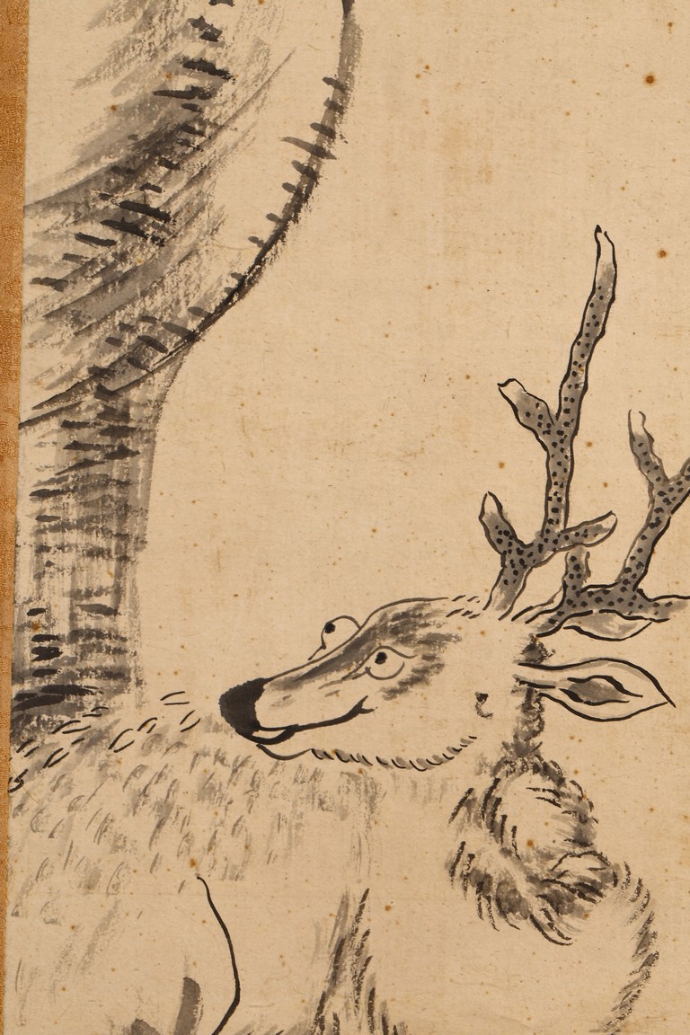 INK ON PAPER 'DEER AND BIRD' PAINTING, BADA SHANREN(1626-1705) 八大山人(1626-1705) 鹿鳥圖 水墨紙本 立軸