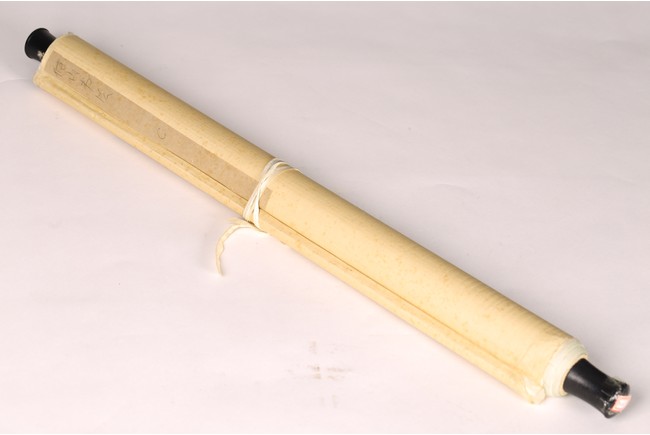 Ink on paper. Cursive script calligraphy. Hanging scroll. Signed Zhen Shan with two seal marks of the artist.