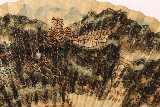 COLOR AND INK 'LANDSCAPE' FAN PAINTING, HUANG BINHONG 黃賓虹(1865-1955) 山水 設色紙本 扇面