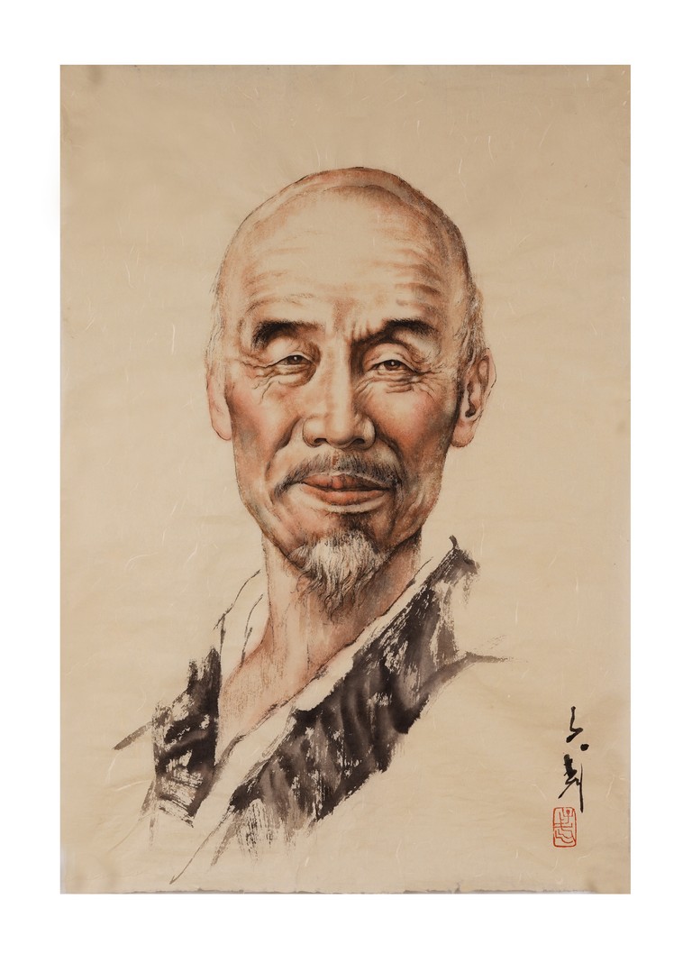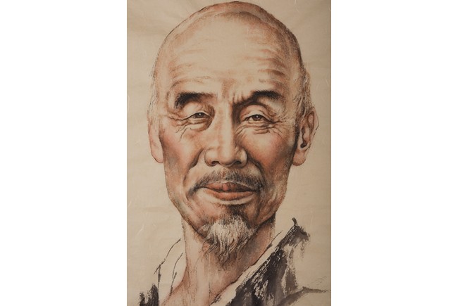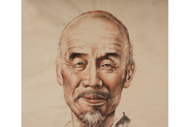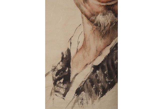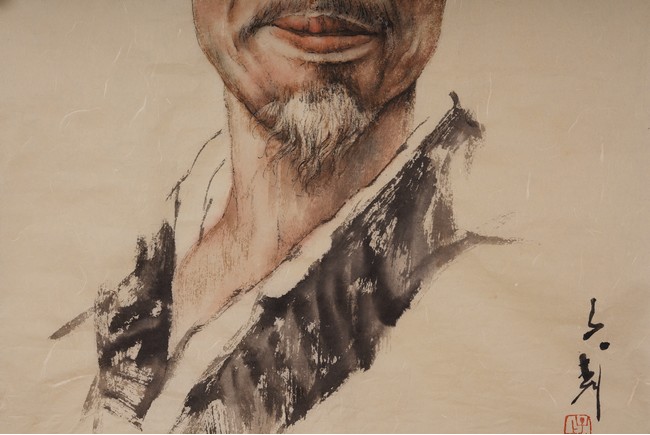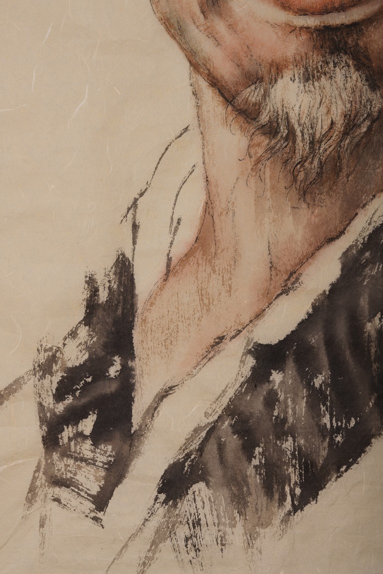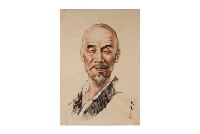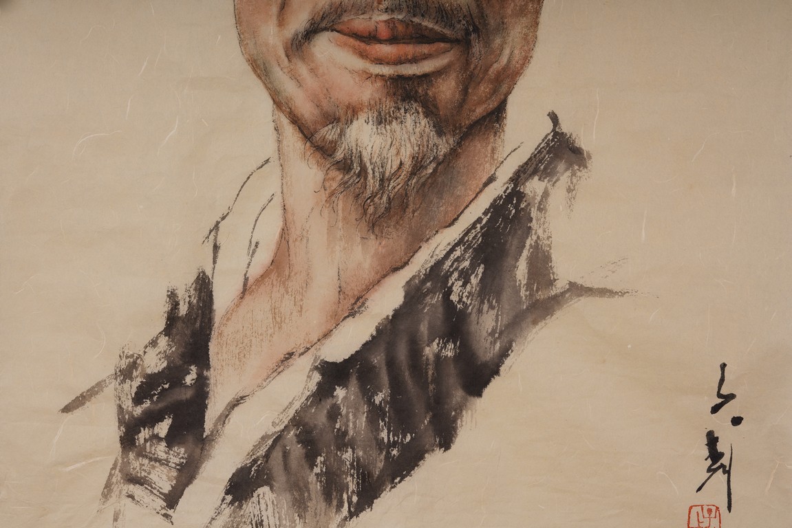 A COLOR AND INK 'FIGURE PORTRAIT' PAINTING 王子武 弘一法師畫像