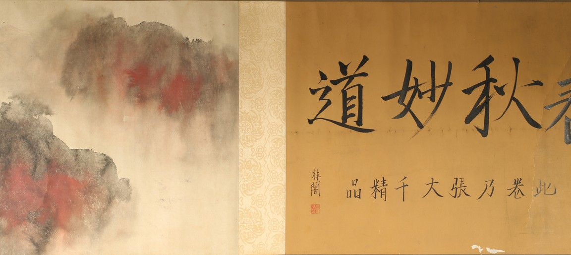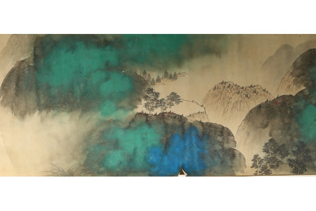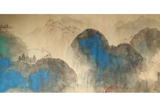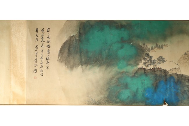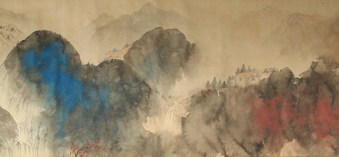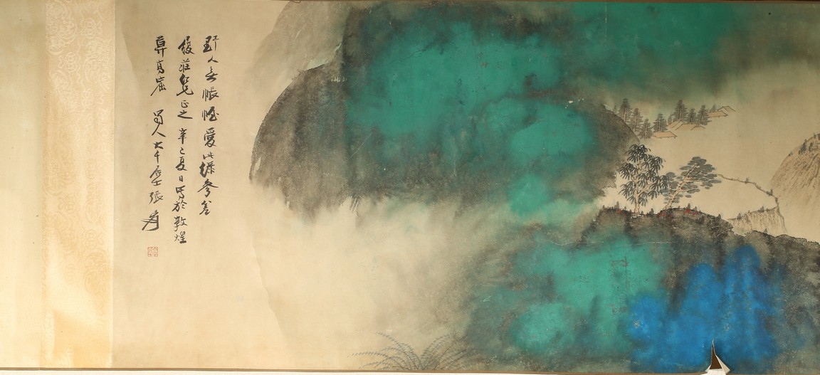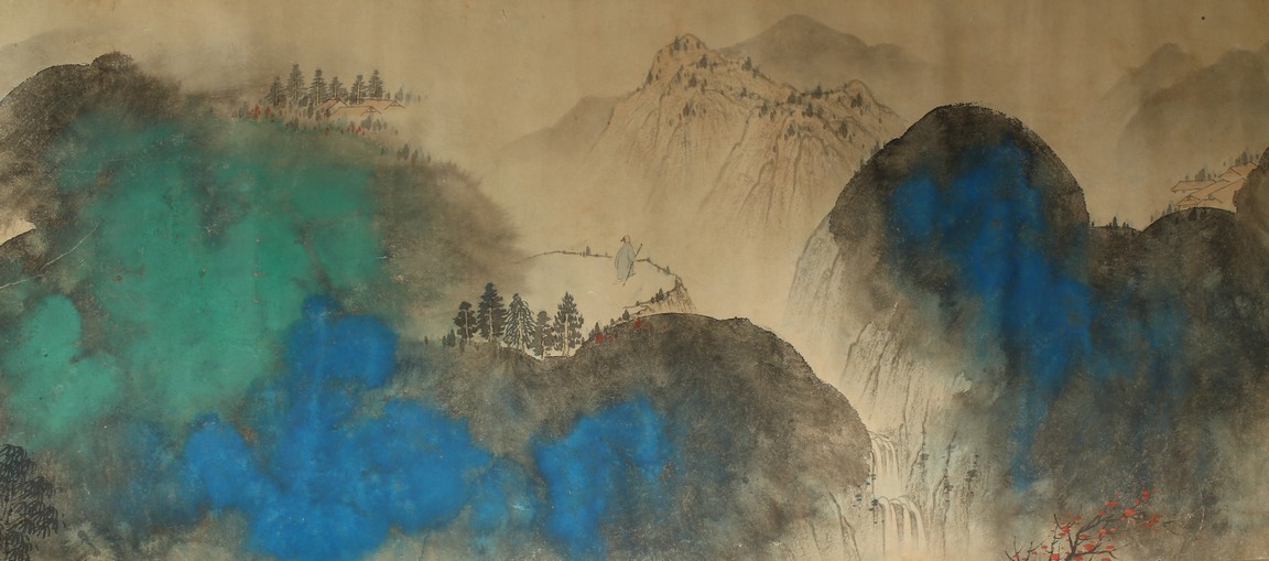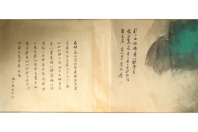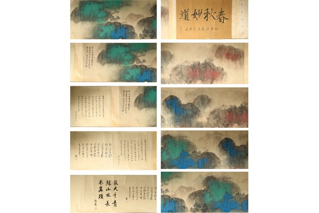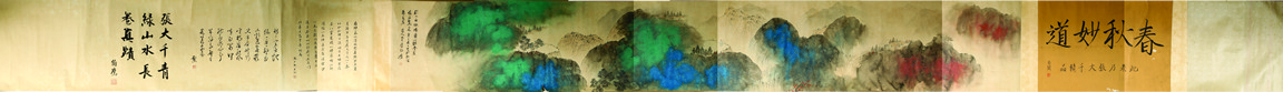 Color and ink on paper. Landscape. Inscribed and signed Yuan, with one seal mark, and several colophons by various artists and calligraphers.