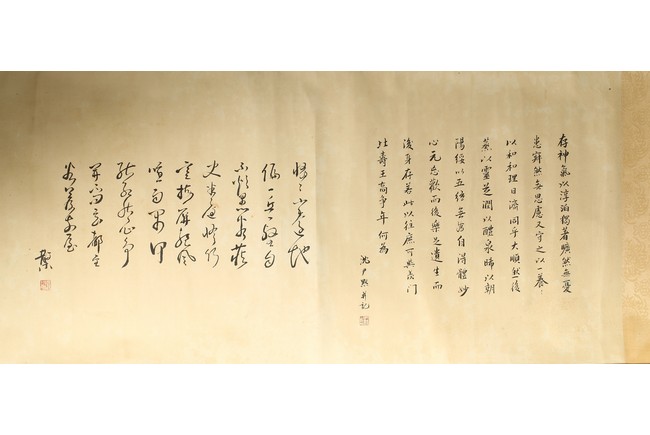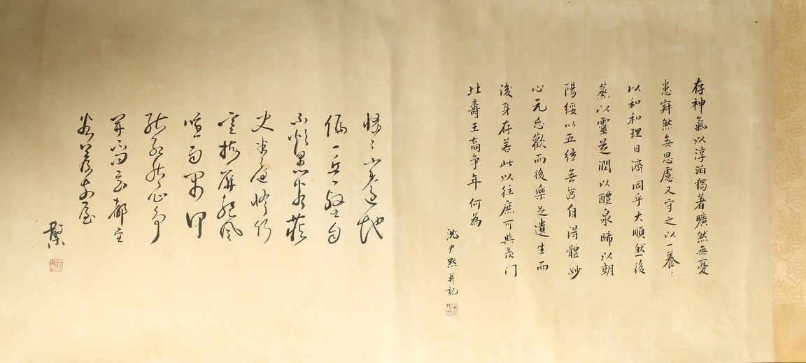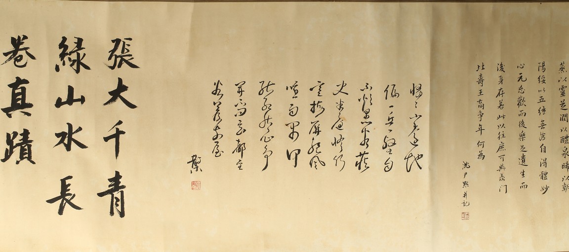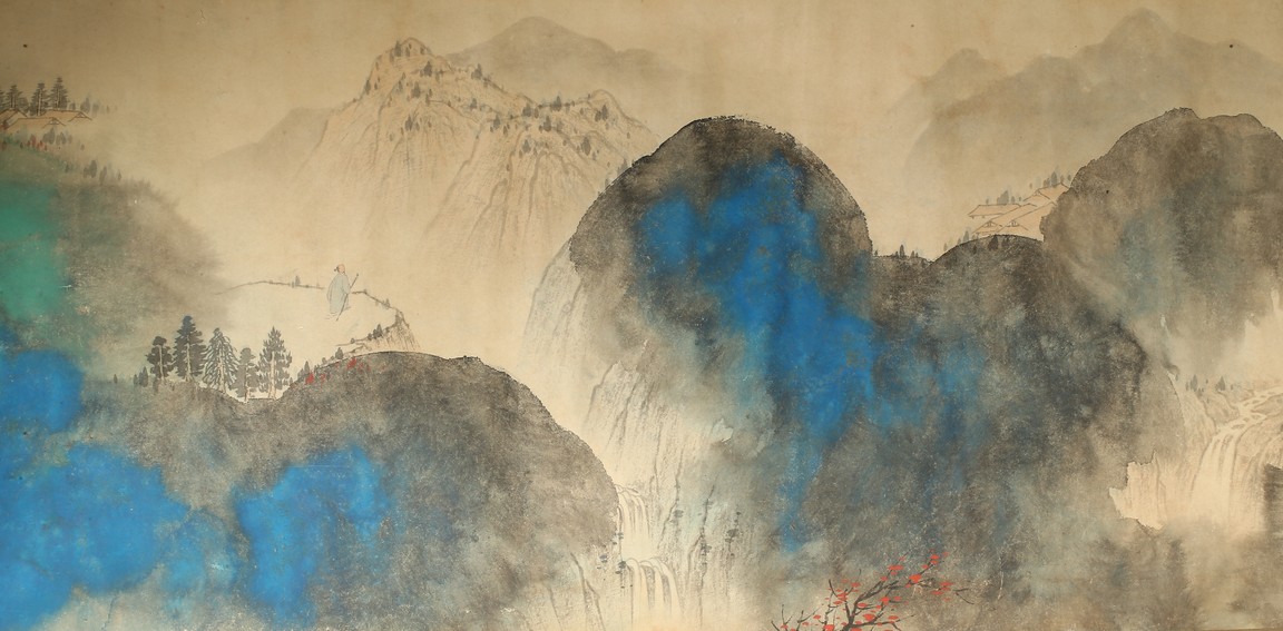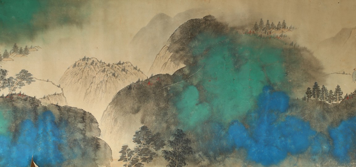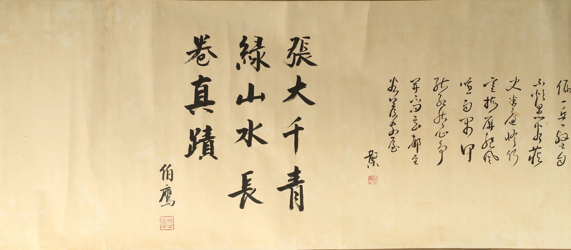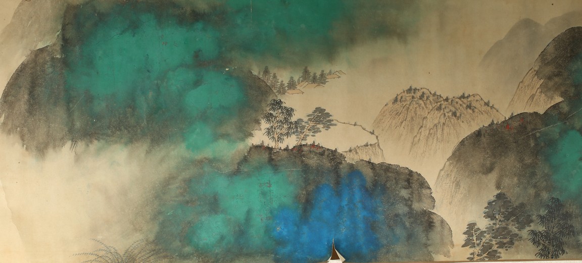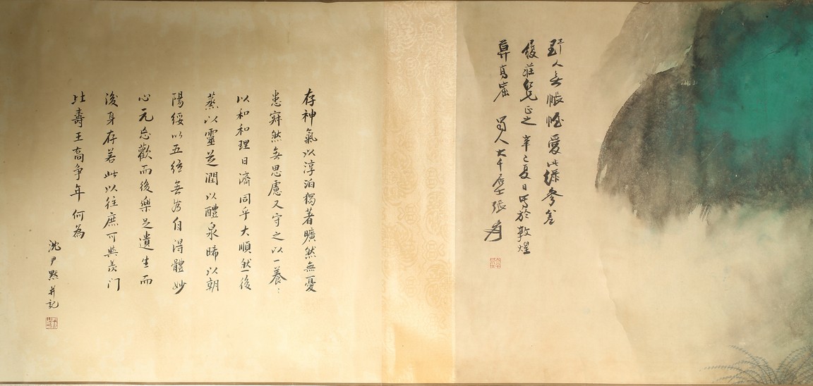 Color and ink on paper. Landscape. Inscribed and signed Yuan, with one seal mark, and several colophons by various artists and calligraphers.