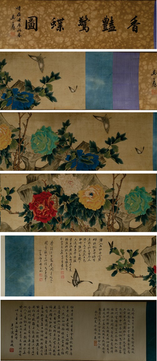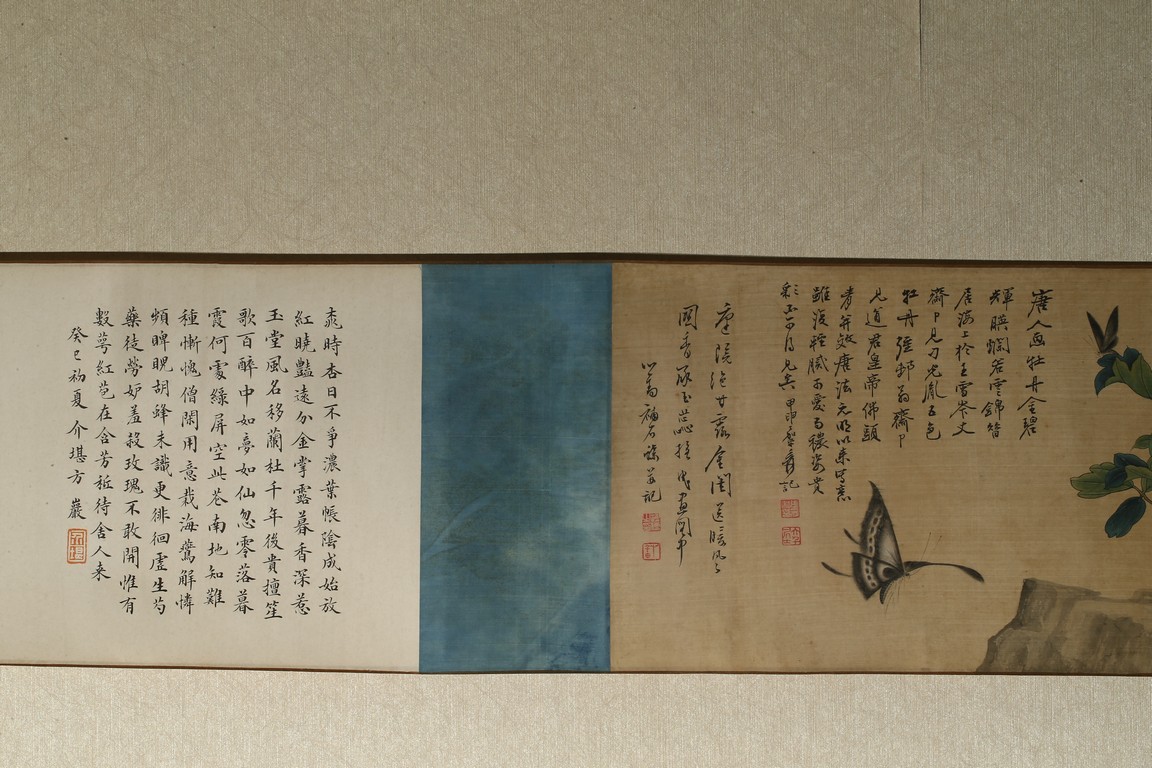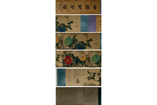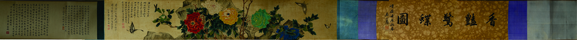 Chinese school. Color and ink on paper. Butterflies and flowers. Attributed to Zhang Daqian and Pu Ru.