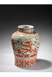A LARGE AND RARE WUCAI 'DRAGON AND PHOENIX' JAR