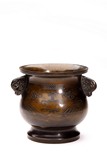 清 銅嵌銀絲雙耳爐