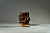 AN AGARWOOD CARVED 'FIGURES' BRUSHPOT