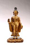 A COPPER ALLOY FIGURE OF STANDING SHAKYAMUNI