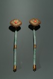 PAIR OF JADEITE RUYI SCEPTERS WITH ZITAN STANDS