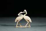 A CELADON JADE CARVED 'CRANE' FIGURAL GROUP