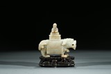 A CHINESE JADE MYTHICAL BEAST AND ARHAT CENSER