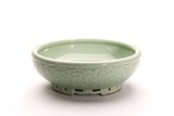 A CHINESE CELADON GLAZED AND MOULDED WASHER