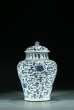 A CHINESE BLUE AND WHITE JAR WITH COVER
