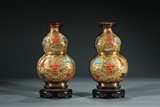 銅鎏金嵌珊瑚松石壁瓶一對 (帶紫檀木托)