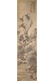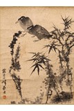 A CHINESE INK ON PAPER 'BIRDS AND ROCK' PAINTING