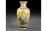 A LARGE CHINESE FAMILLE ROSE YELLOW GROUND 'BOGU' VASE