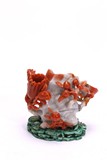 清乾隆 南紅瑪瑙巧雕三多紋水洗 配壽山石座