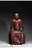 A RED LACQUER WOOD FIGURE OF TAOIST IMMORTAL ZHEN WU