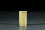 A SMALL YELLOW JADE INSCRIBED CYLINDER BEAD