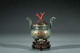 A CLOISONNE ENAMEL TRIPOD CENSER WITH STAND