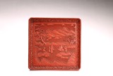 A CHINESE CINNABAR LACQUER CARVED 'LITERATI' DISH
