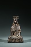 A CHINESE PARCEL-GILT BRONZE FIGURE OF SEATED GUANYIN