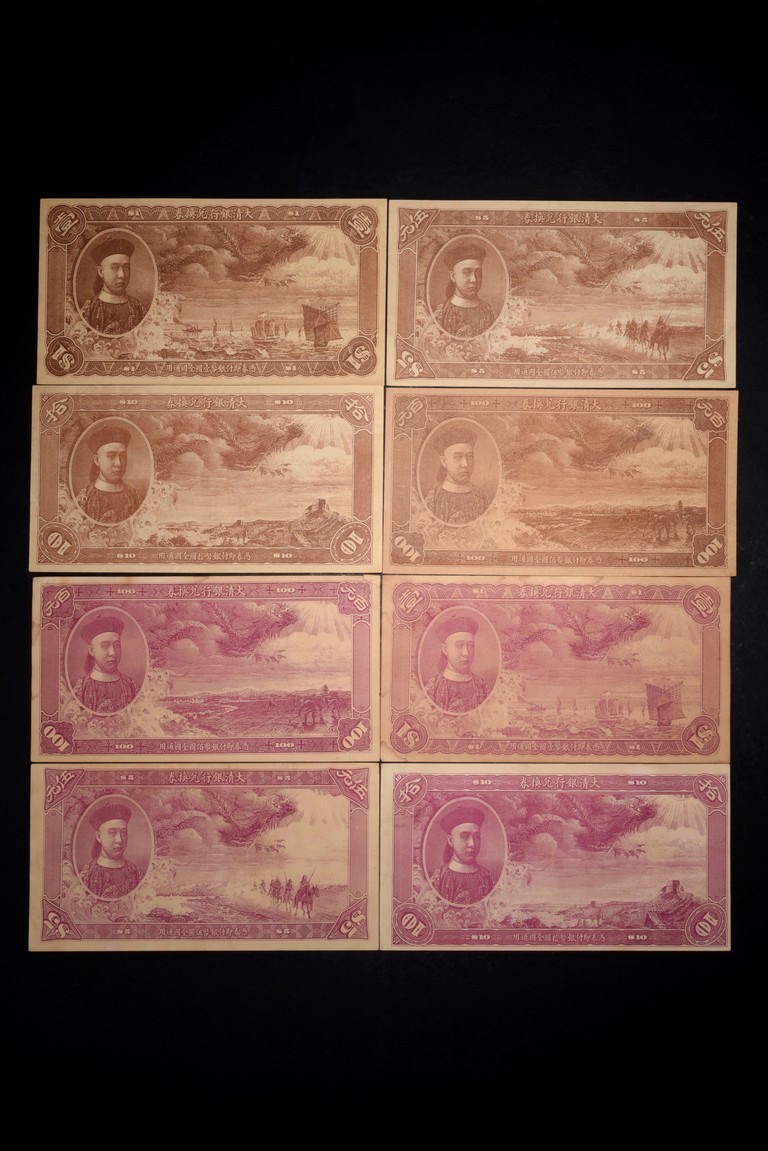 A SET OF QING GOVERNMENT BANKNOTES 大清銀行兌換劵兩組八張