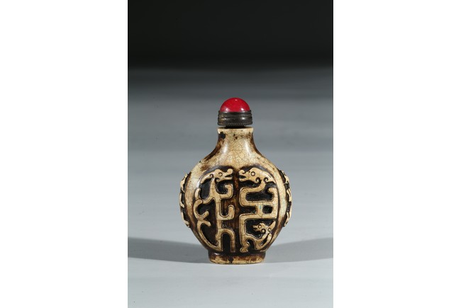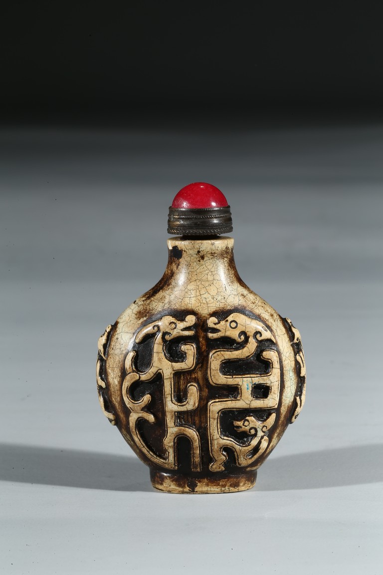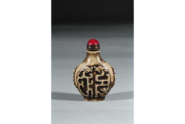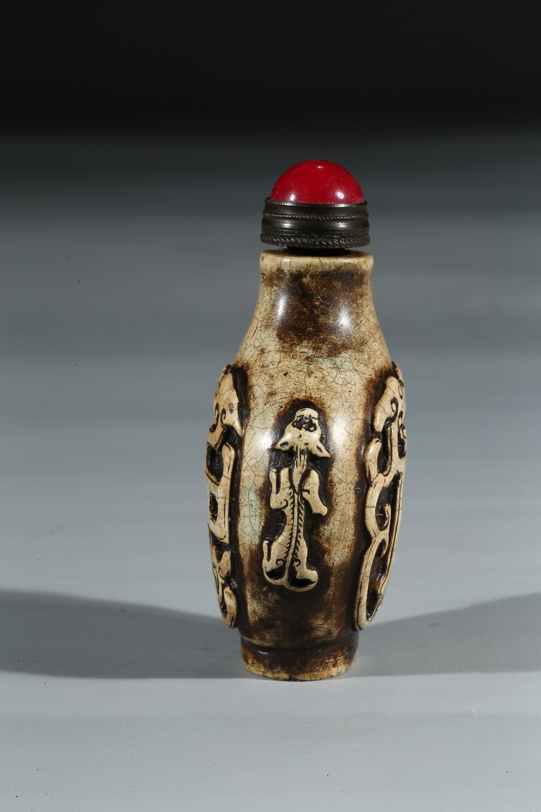 A STONE CARVED DRAGON SNUFF BOTTLE 清 玉雕雙龍鼻煙壺
