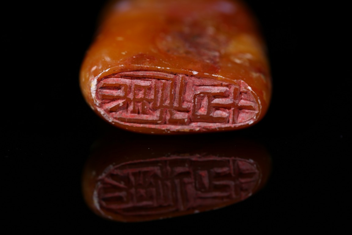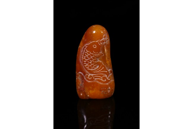 A SOAPSTONE 'CARP' SEAL 壽山石隨形印章