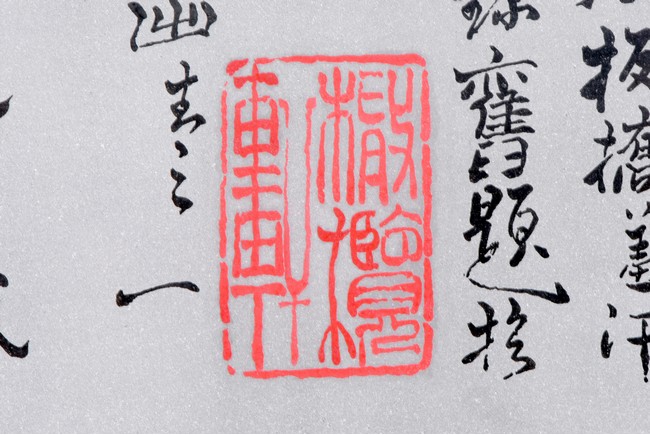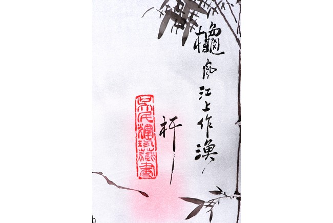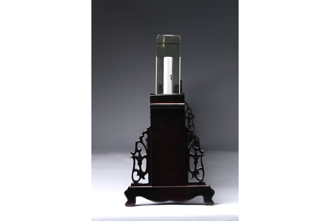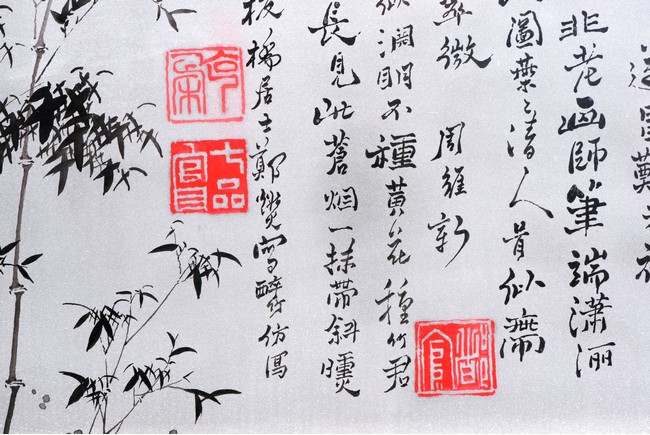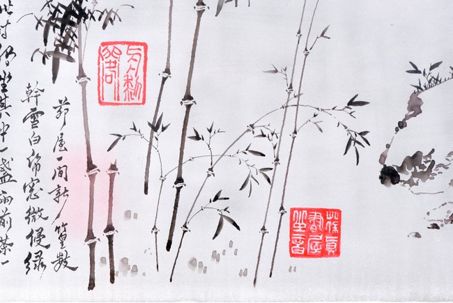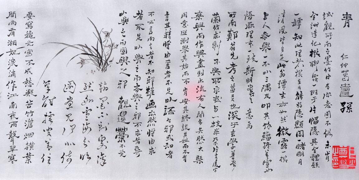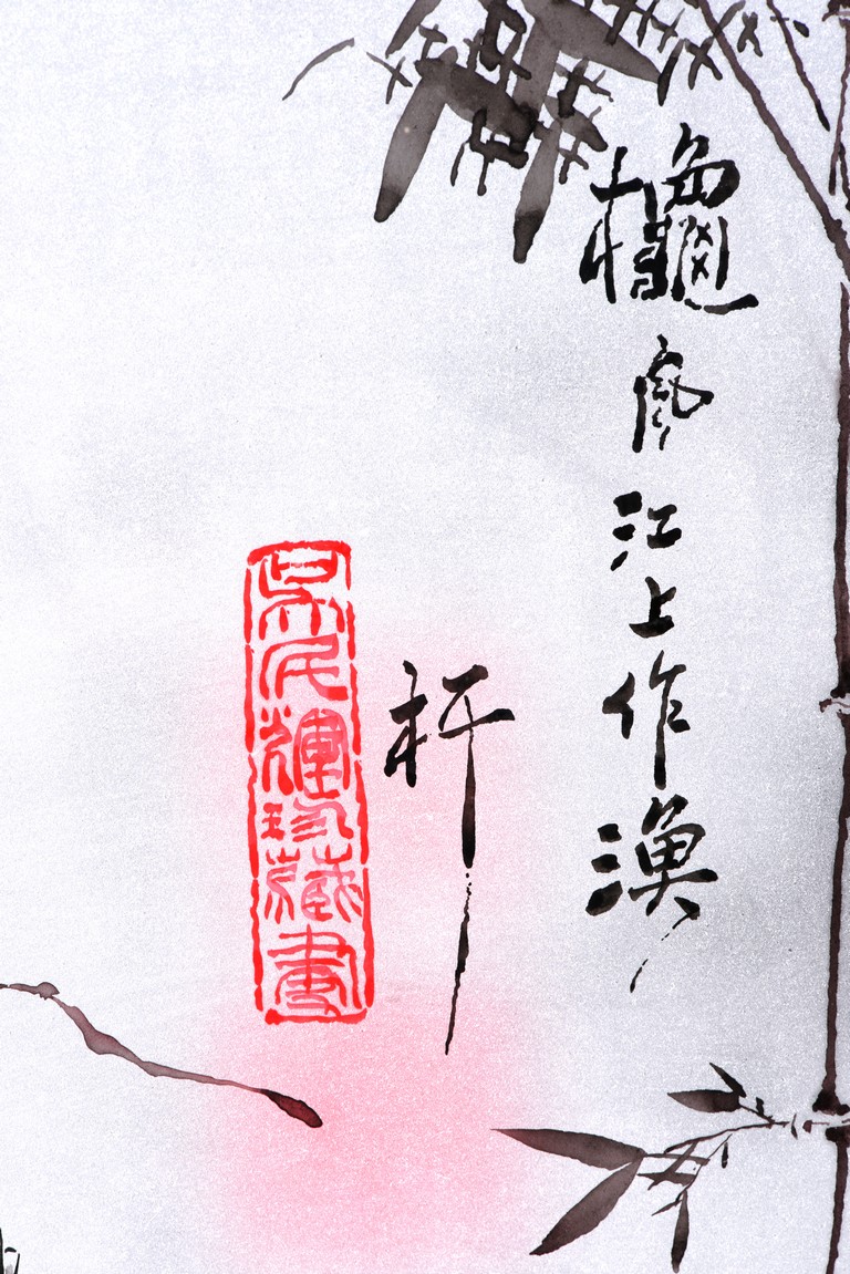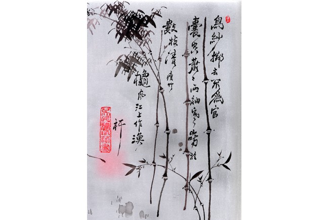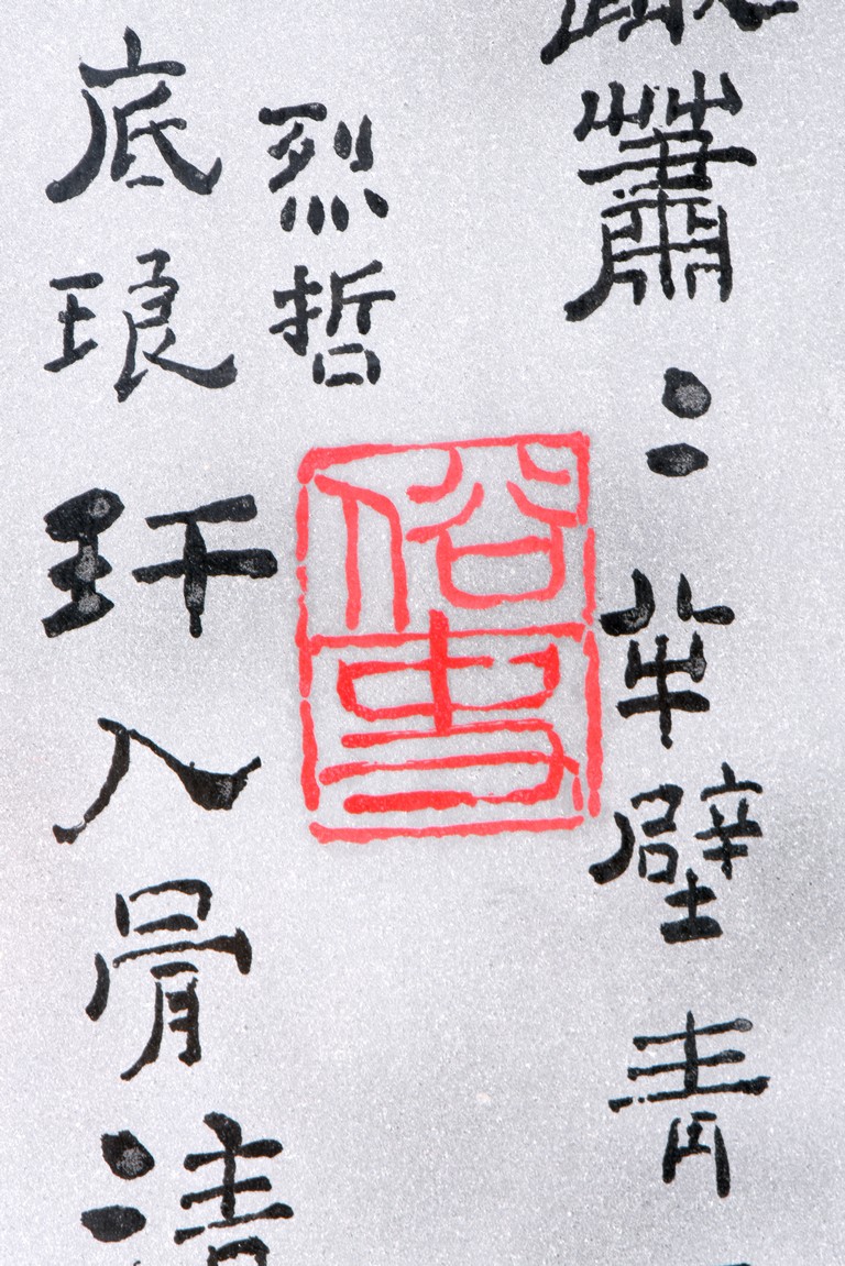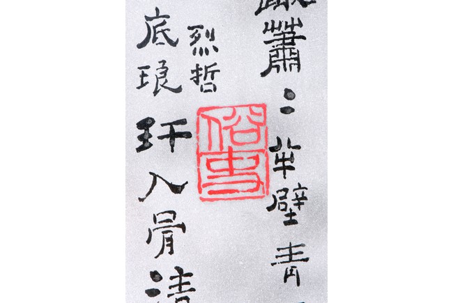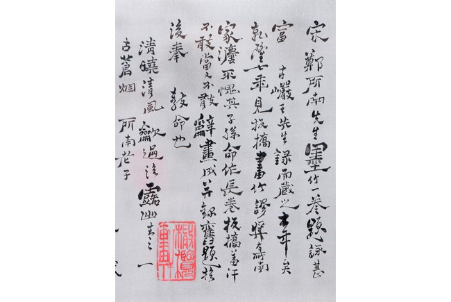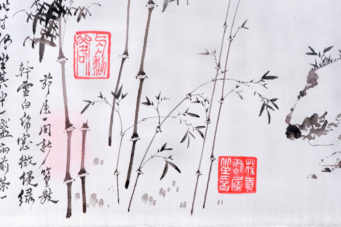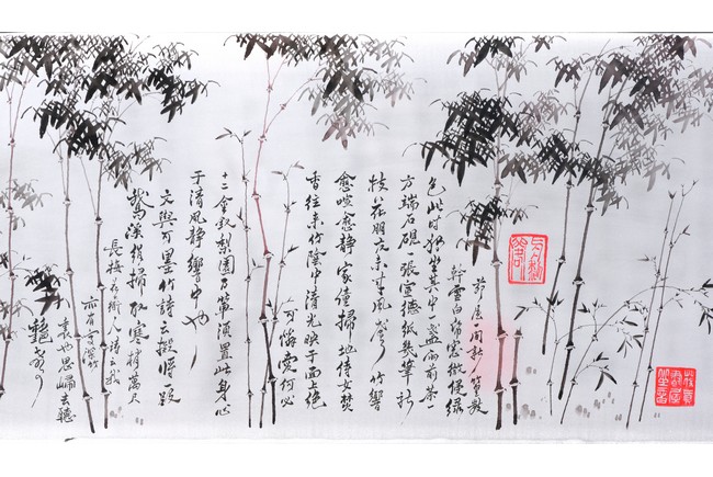 Rectangular modelled, the transparent glass table screen is finely inside-painted with poems, bamboos, and orchids in the manner of Zheng Banqiao.