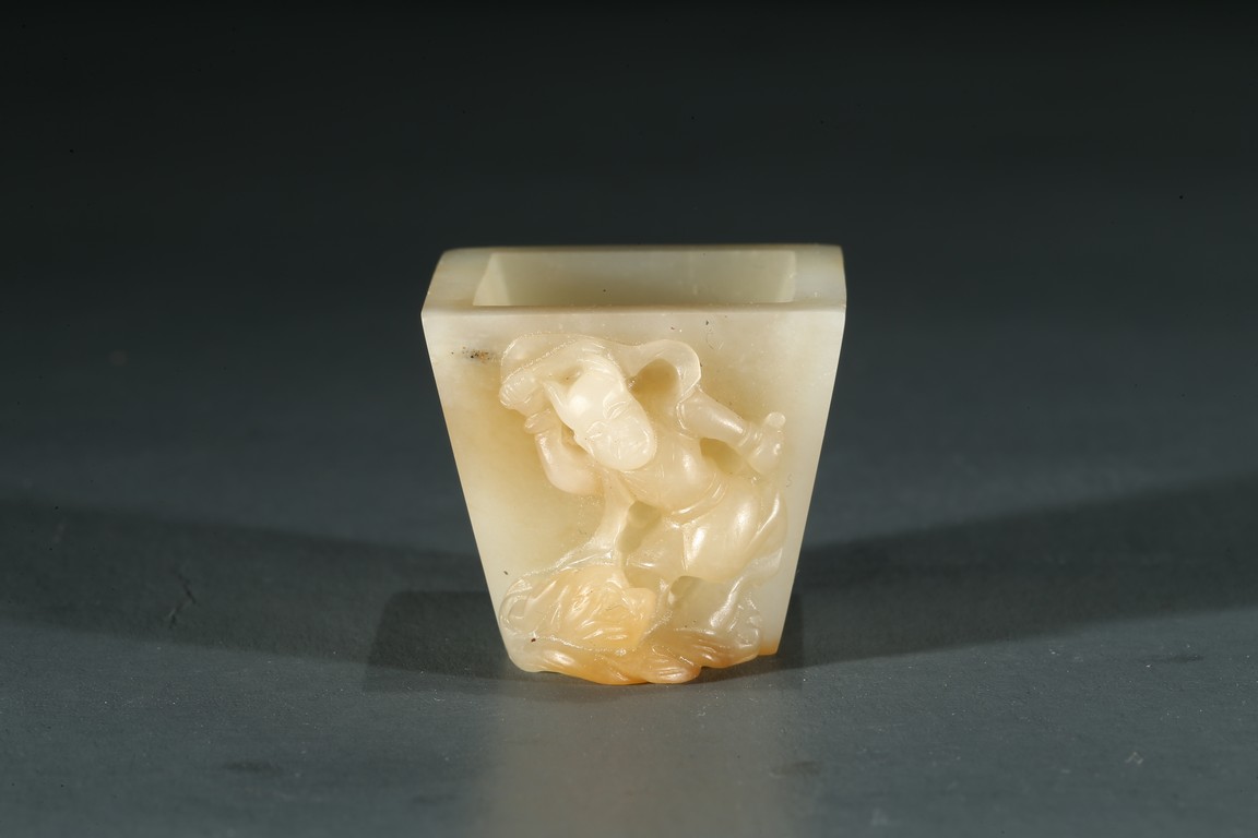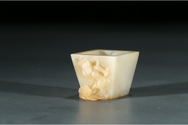 A SMALL JADE CARVED WASHER 白玉魁墨點鬥 (乾隆年制款4型水盂)